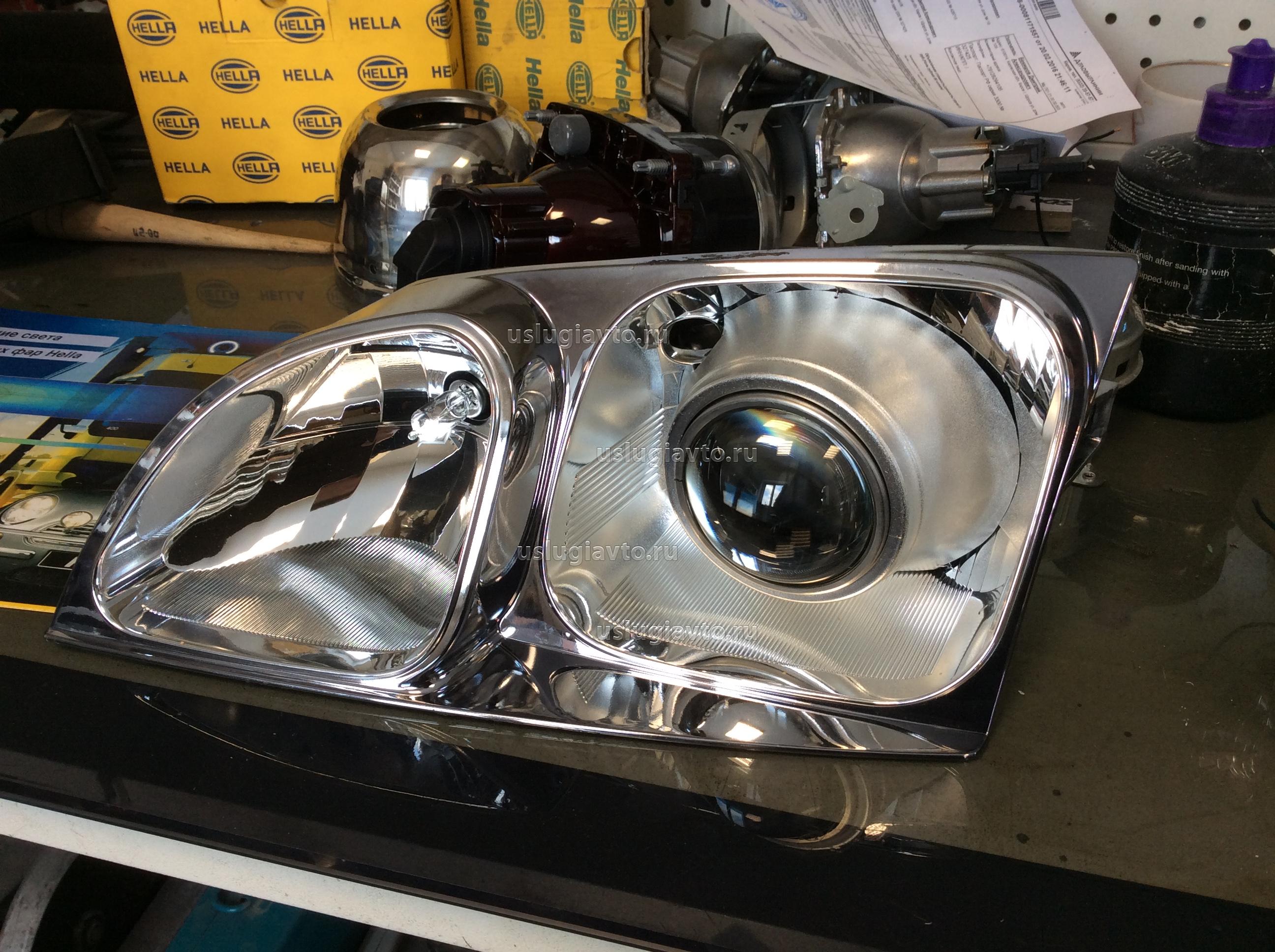 Фара от Caldina 2000 года с правым рулём. Основным позывом в реконструкции послужило желание иметь нормальный евросвет и что бы ни кого не слепить. Штатные фары светили влево.