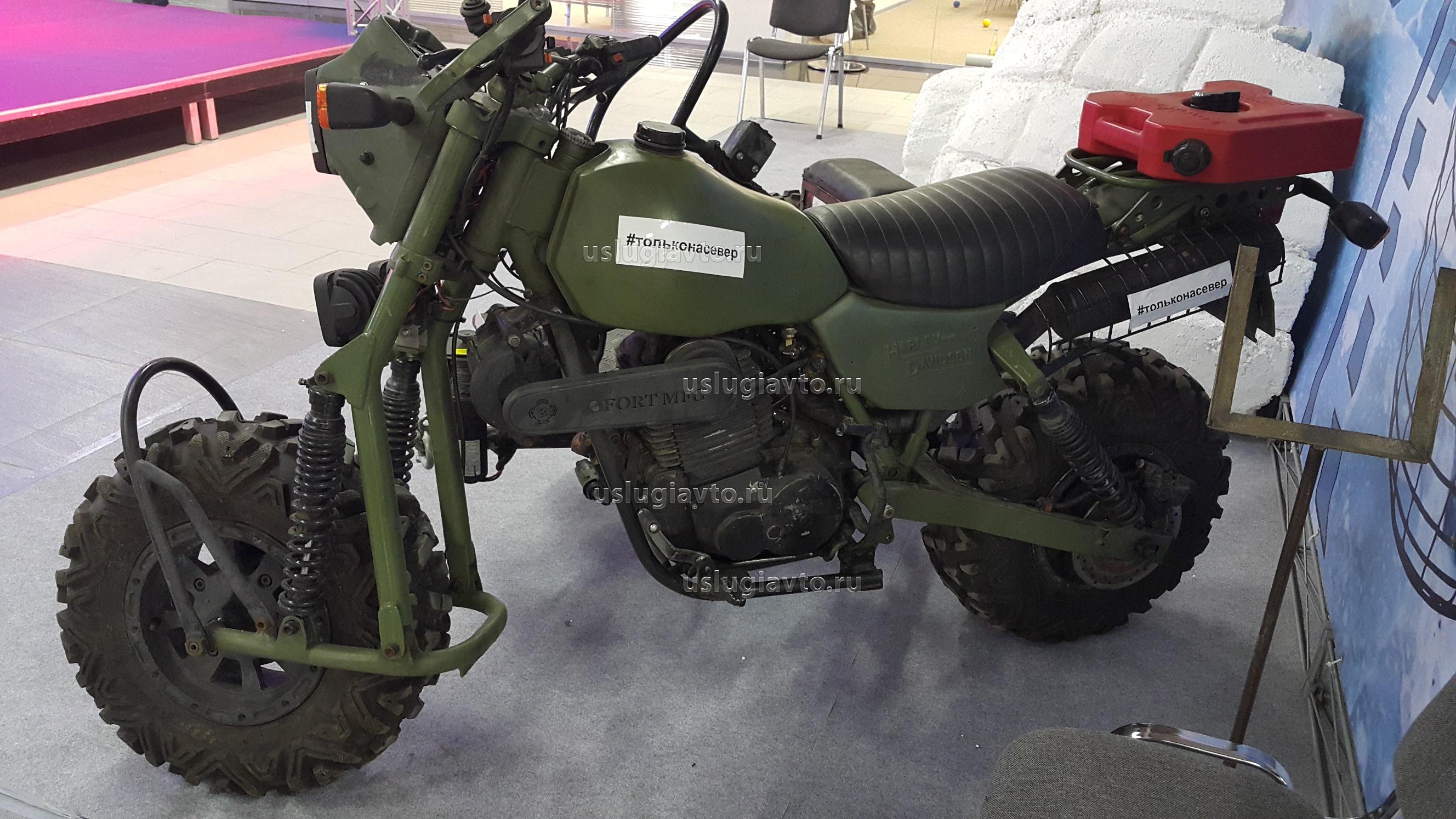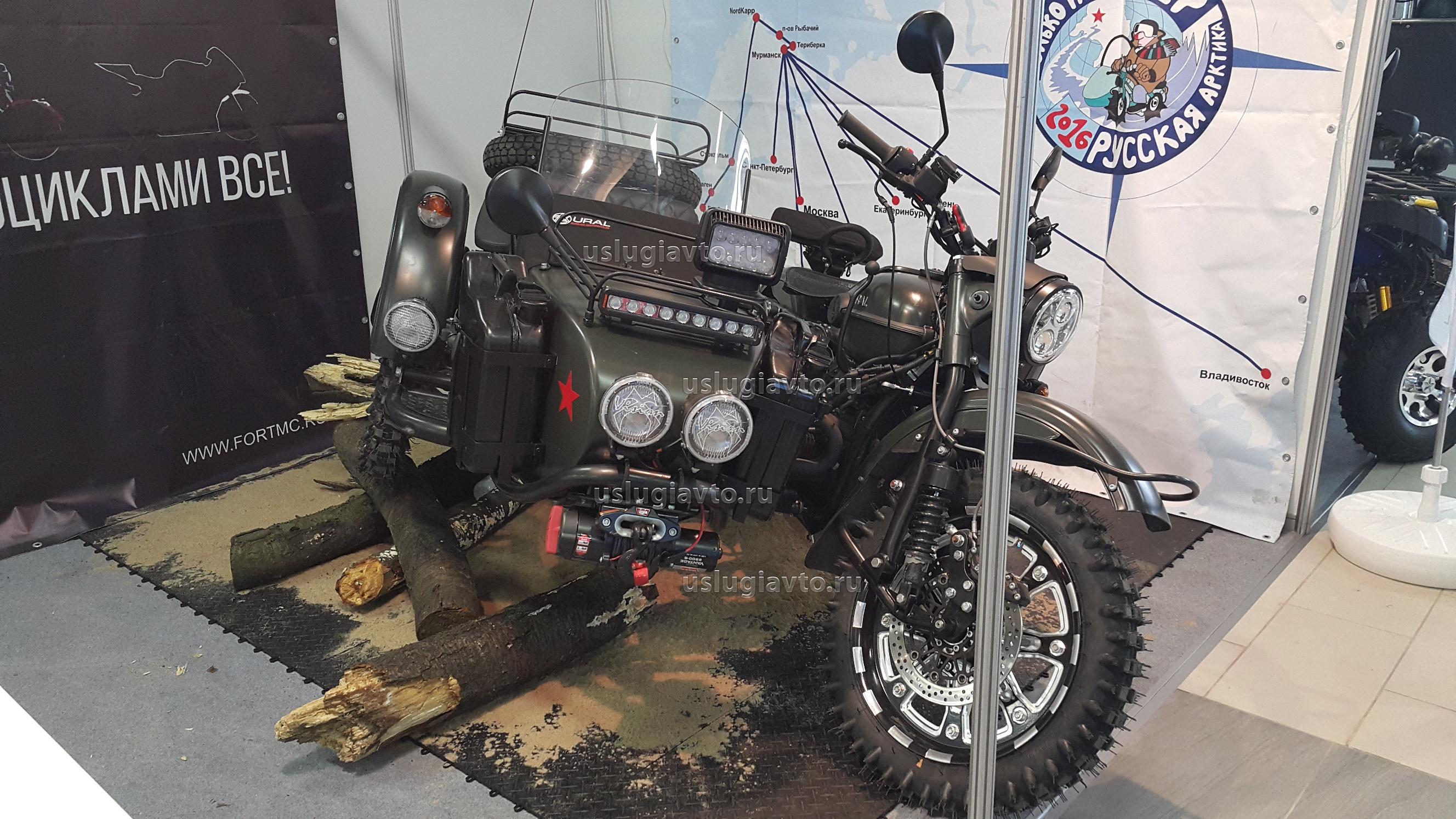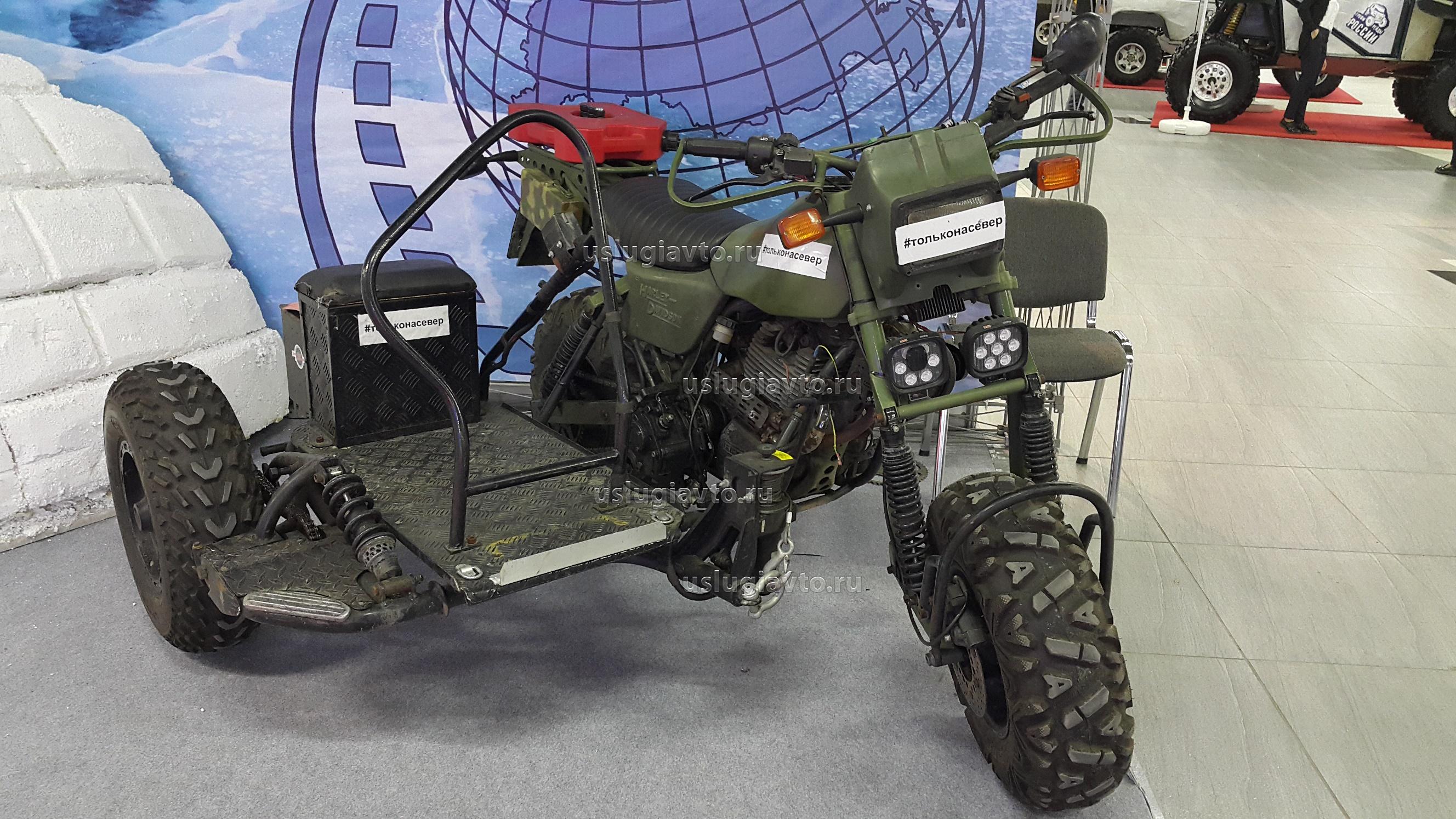 Почти полноприводный мотоцикл с коляской, колесная формула 3х2, лебедка самовытаскивания в наличии