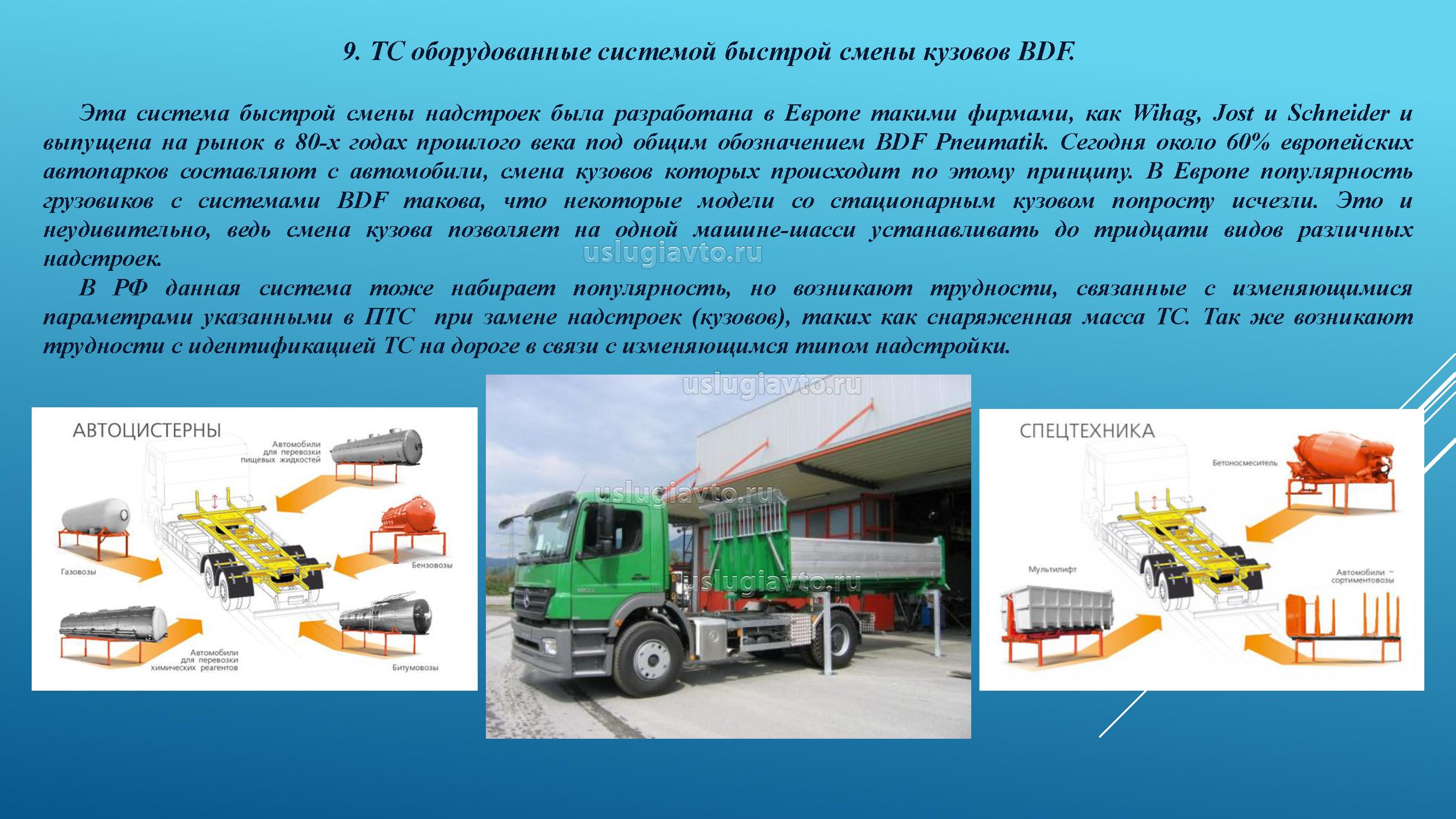9. ТС оборудованные системой быстрой смены кузовов BDF.