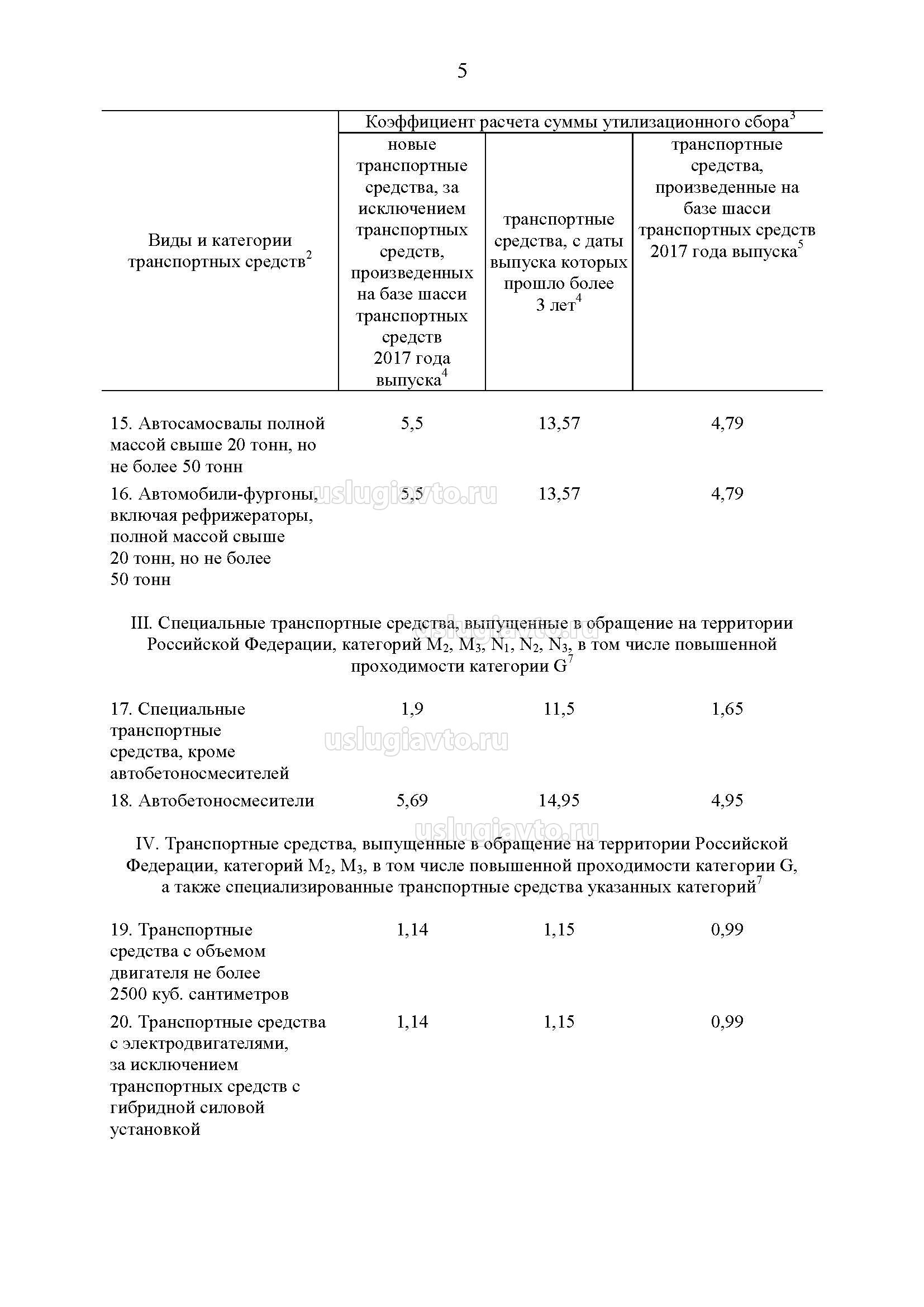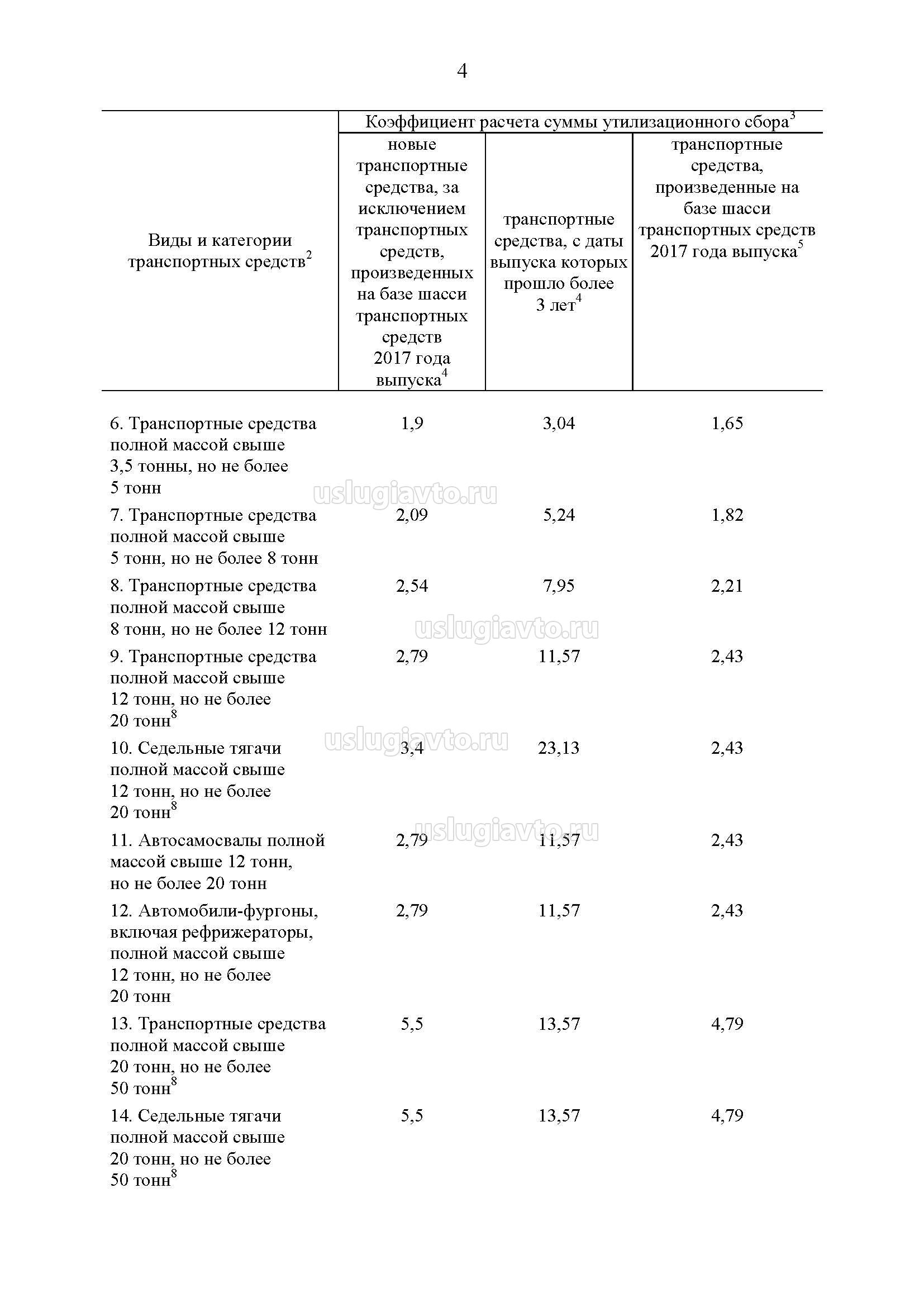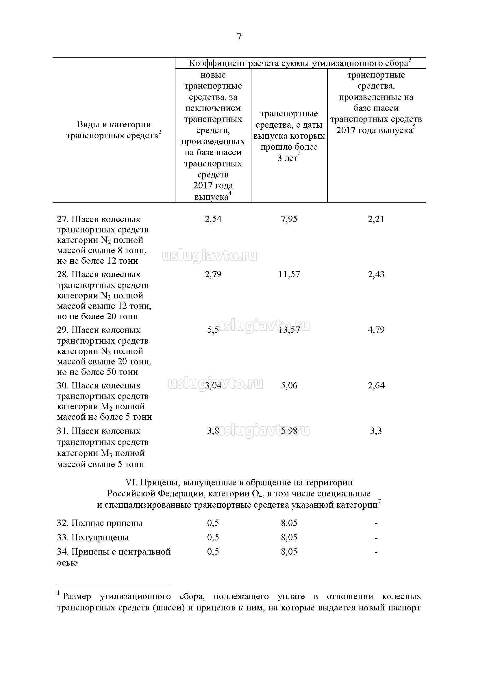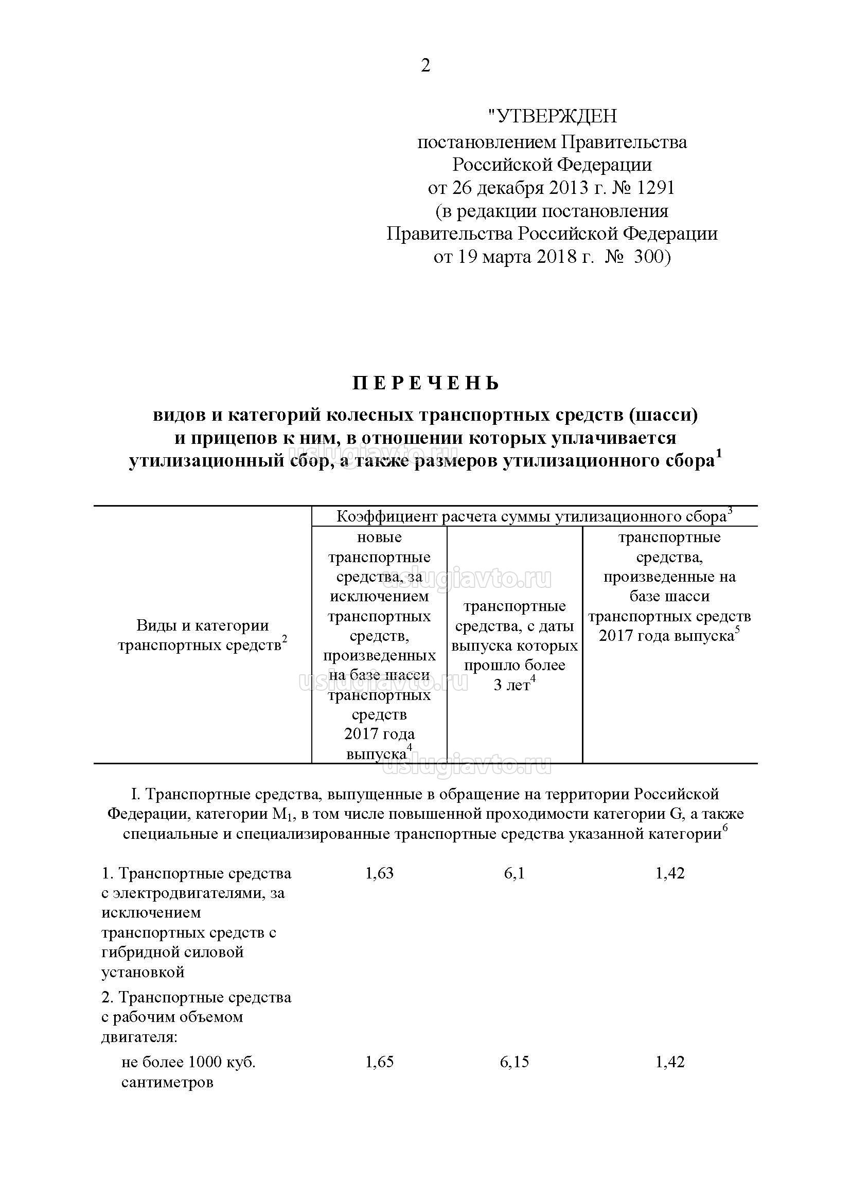 Постановлением Правительства от 26 декабря 2013 года №1291 утверждён перечень видов и категорий колёсных транспортных средств (шасси) и прицепов к ним, в отношении которых уплачивается утилизационный сбор, а также размеров утилизационного сбора