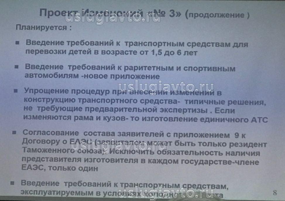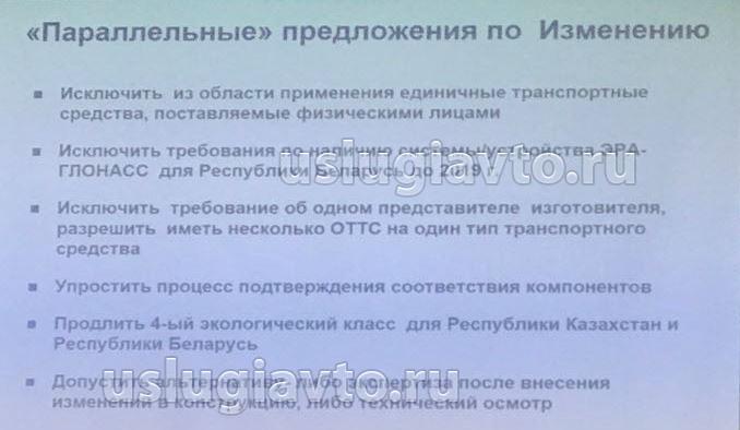 Речь идет об упрощении регистрации внесения изменений в конструкцию для собственника ТС. Т.е. исключение предварительной технической экспертизы для типовых внесений в конструкцию с установкой сертифицированных компонентов (ГБО, ТСУ...).