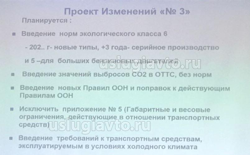 - Введение 5-го экологического класса к впервые выпускаемой в обращение единичных АТС.