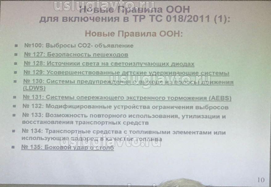 Новые Правила ООН для включения в ТР ТС 018/2011 (1):