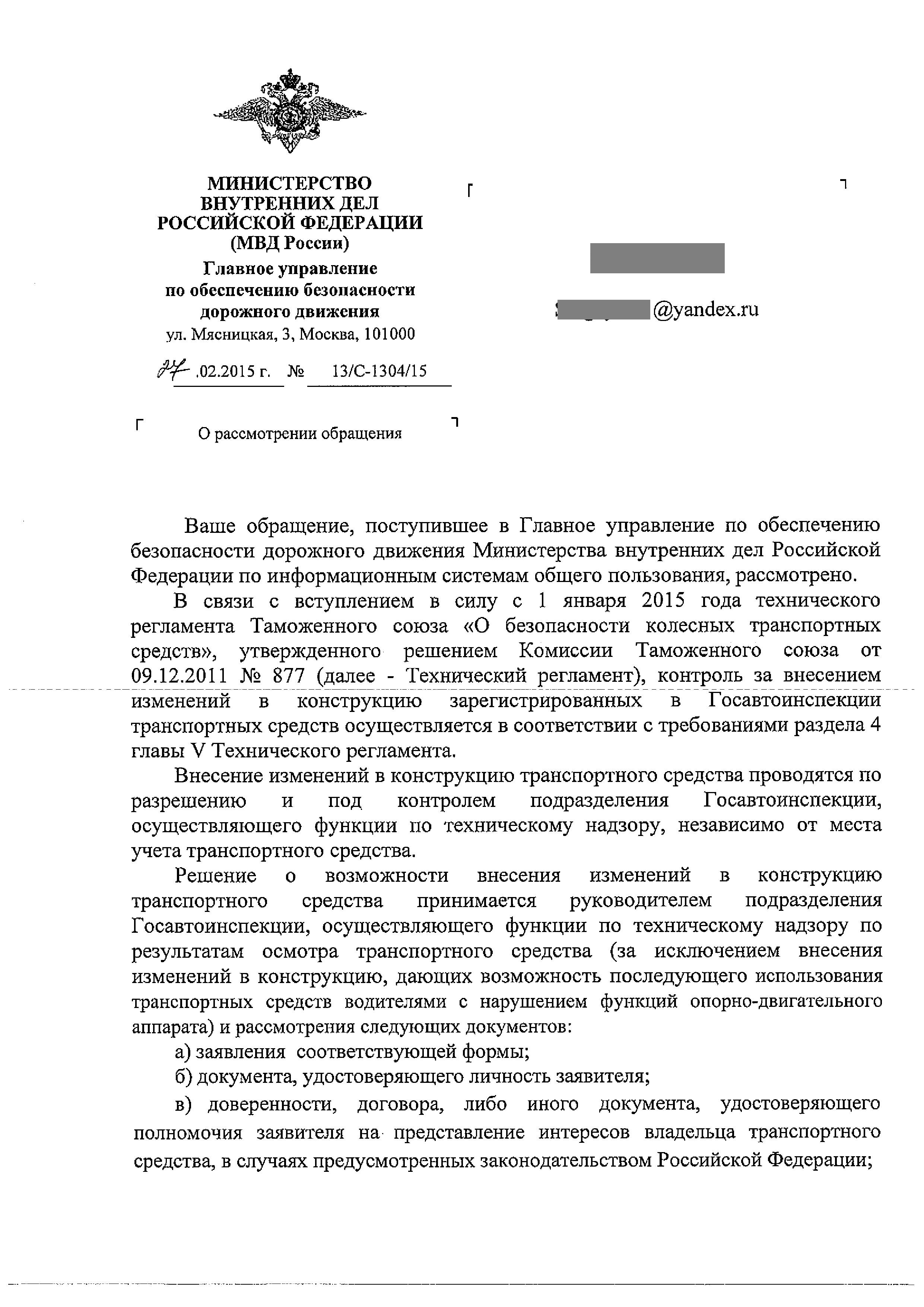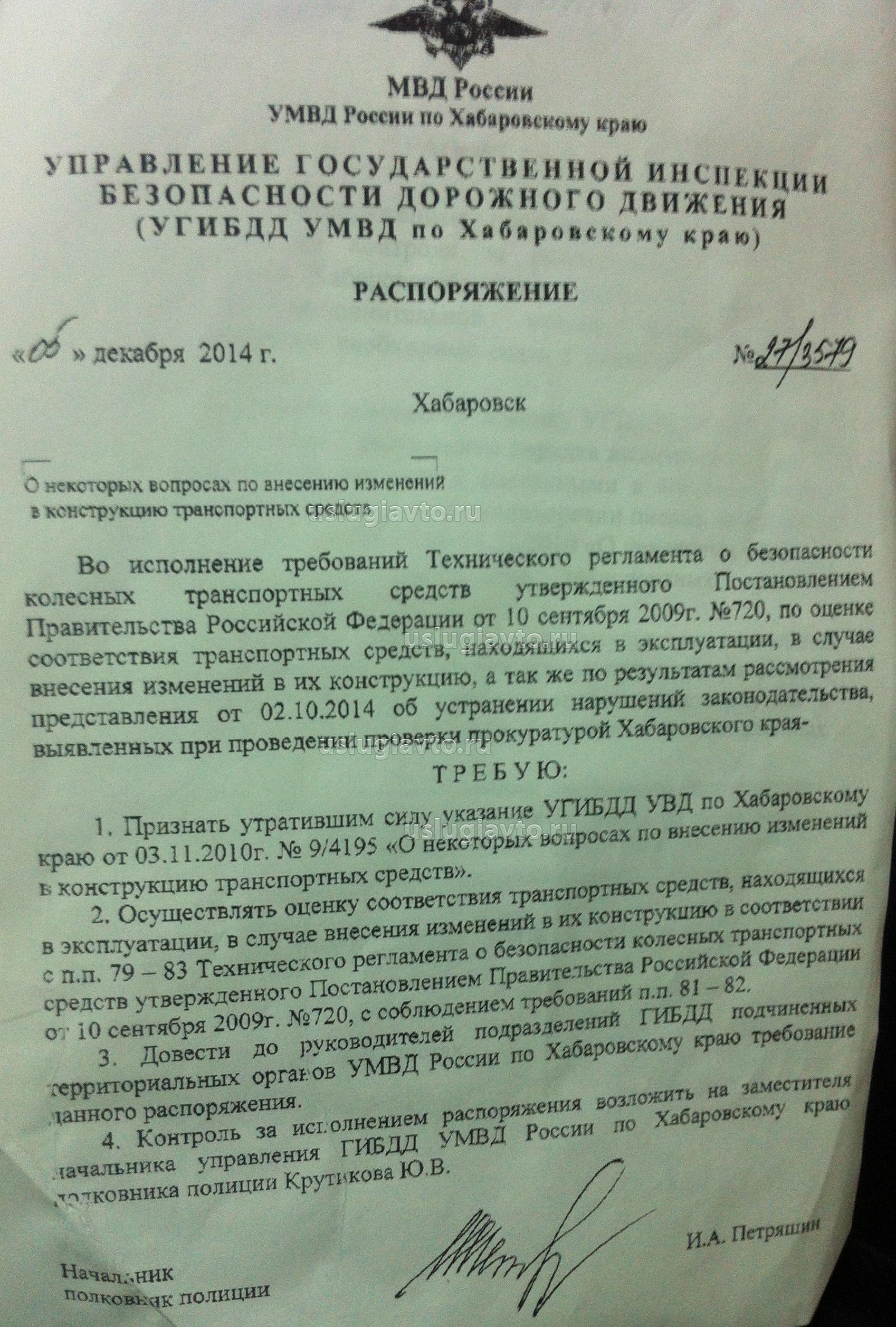 Разъяснение внесения изменений в конструкцию от декабря 2014 г. УГИБДД Хабаровский край