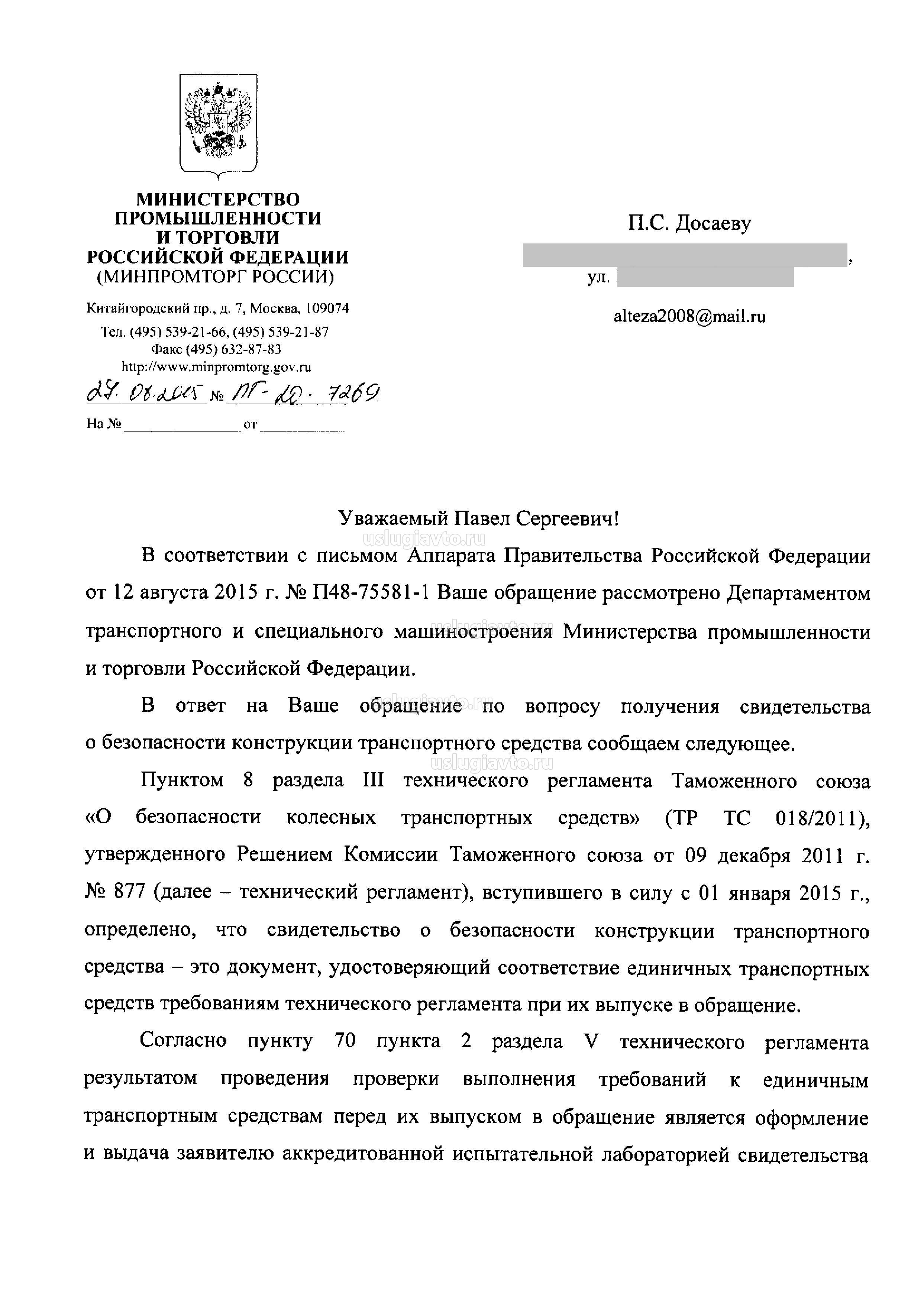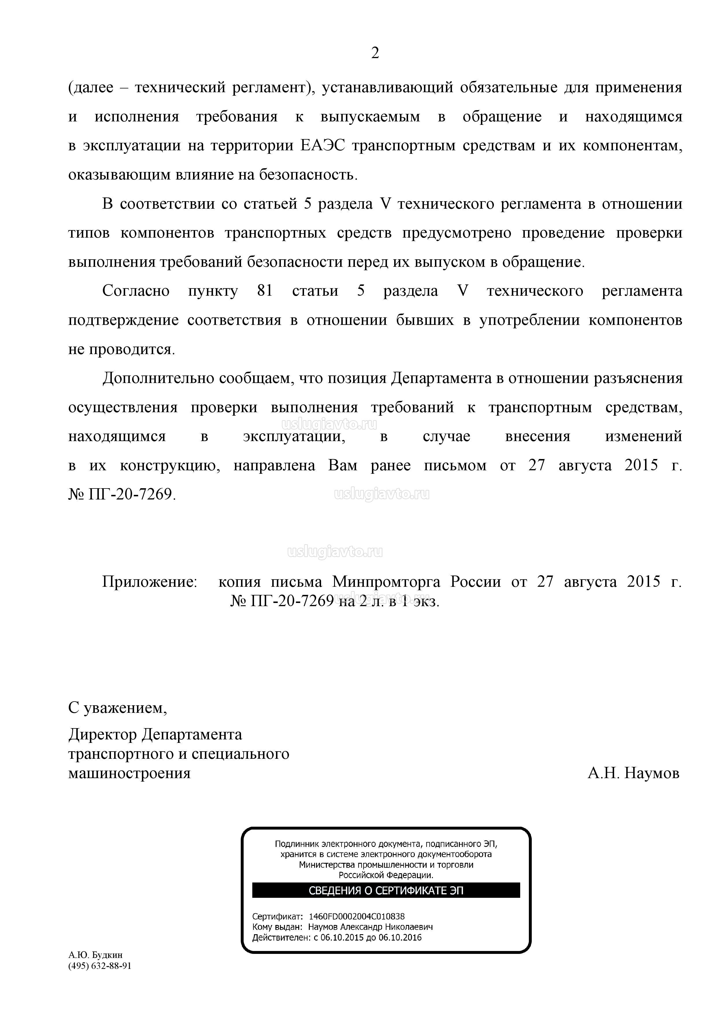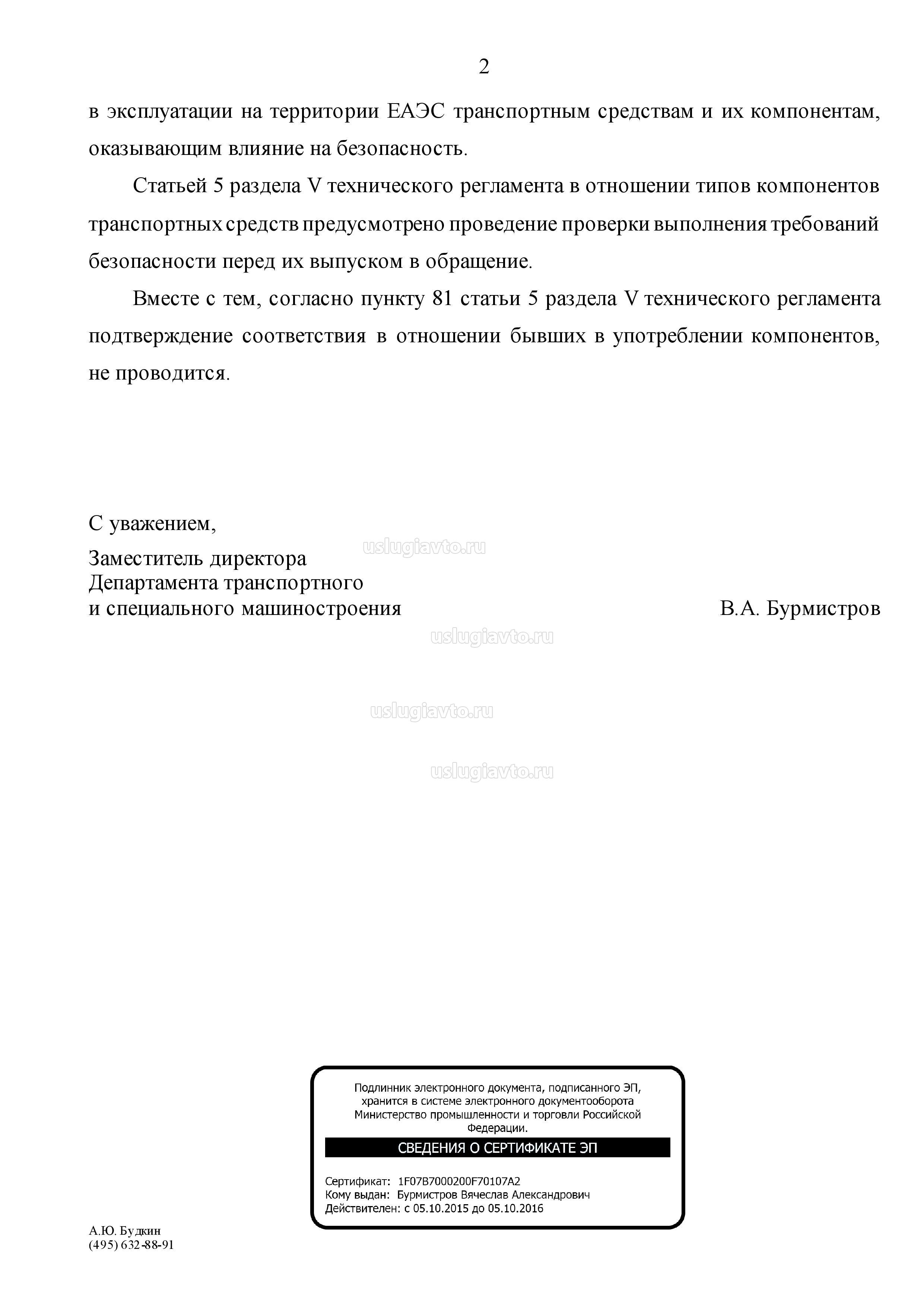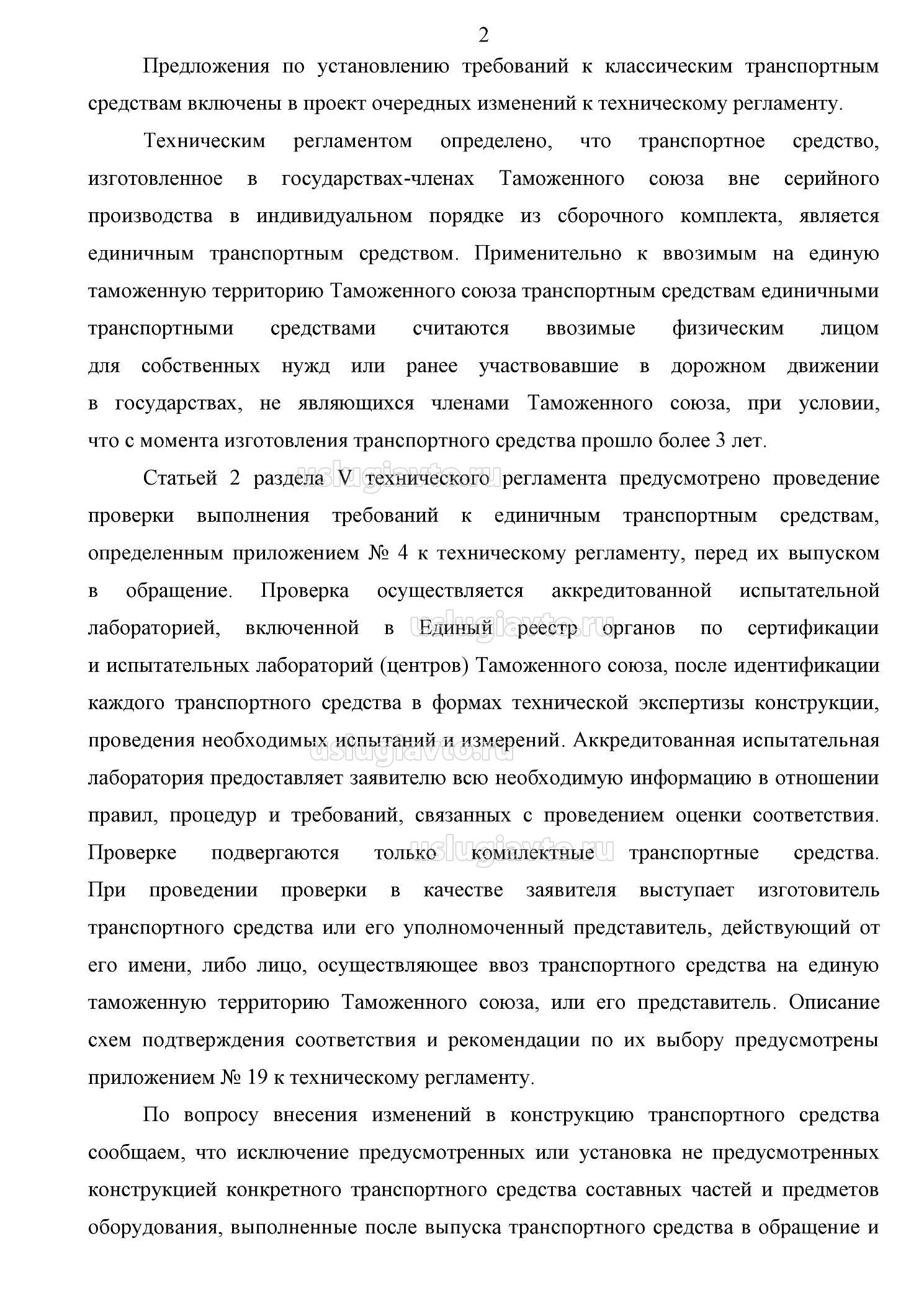 - Разъяснение Минпромторга РФ о выпуске в обращен ТС старше 30 лет и других положений ТР ТС 018/2011 страница 2