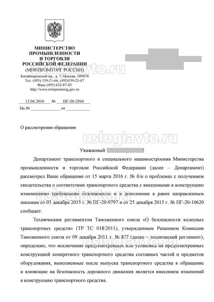- Разъяснение Минпромторга РФ о выпуске в обращен ТС старше 30 лет и других положений ТР ТС 018/2011 страница 1