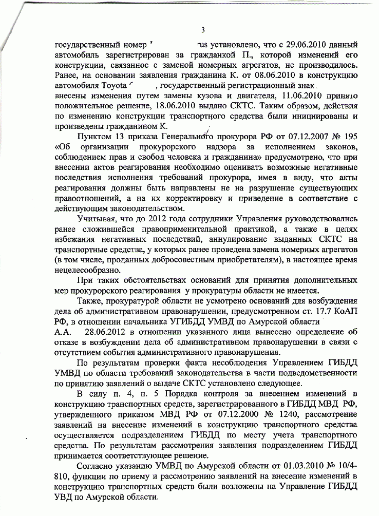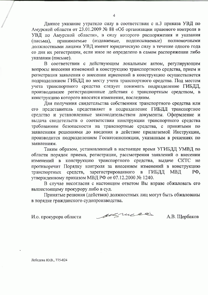 Начальник УГИБДД УМВД РФ ПО Амурской области вообще наделен какимито неограниченными возможностями: сам сочиняет определение верховного суда , получив в свой адрес представление прокуратуры имеет право рассмотреть его и неудовлетворить , мотивируя это тем , что раньше он еще не сочинил определение верховного суда и не почитал определение кассационного суда г.Хабаровска , но когда он всеже все это изучил ,то приказ МВД РФ №1240 вдруг начал понимать совсем по другому (прекратил выдачу ССКТС)