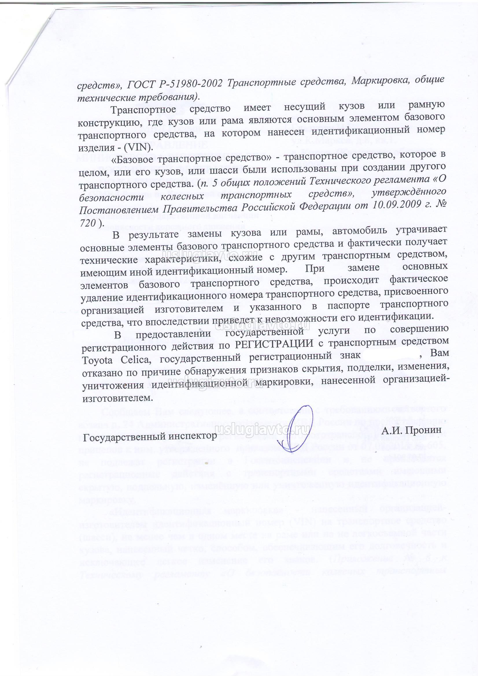 3. В 2014 году В результате замены кузова(шасси) уничтожается маркировка нанесенная заводом изготовителем, и транспортное средство невозможно идентифицировать ( пока не до конца разобрались, но исходя из практики, положительных решений в пользу граждан больше, просто их не так легко найти)