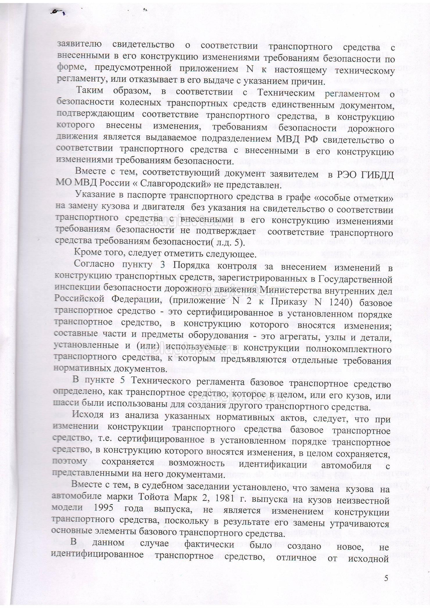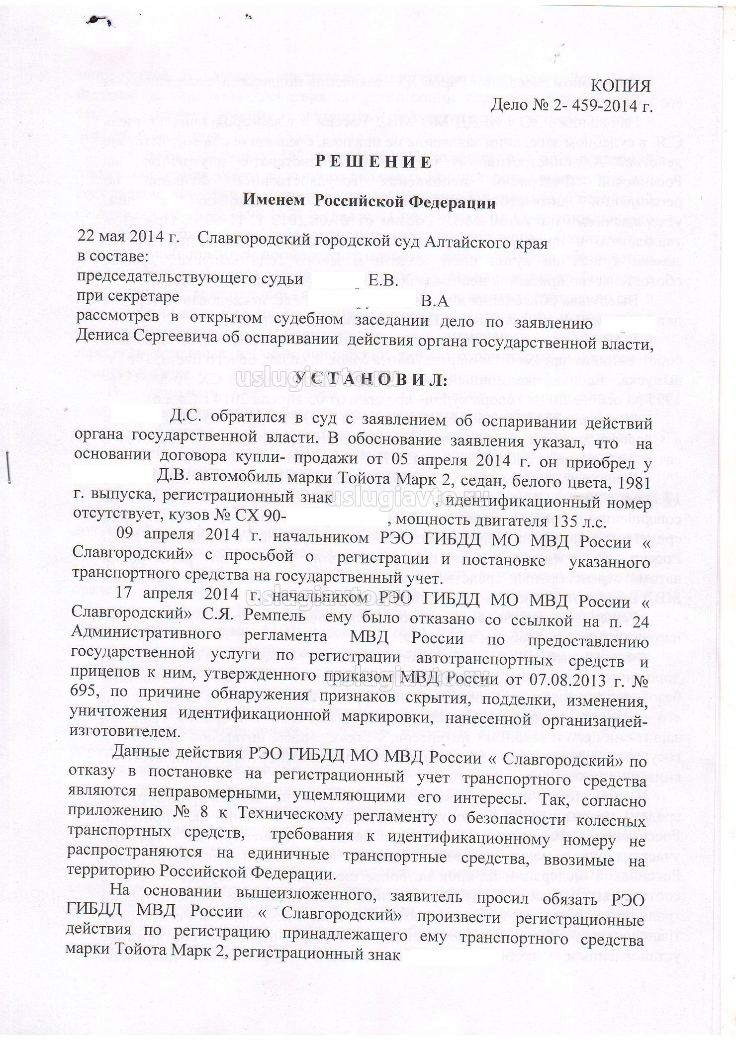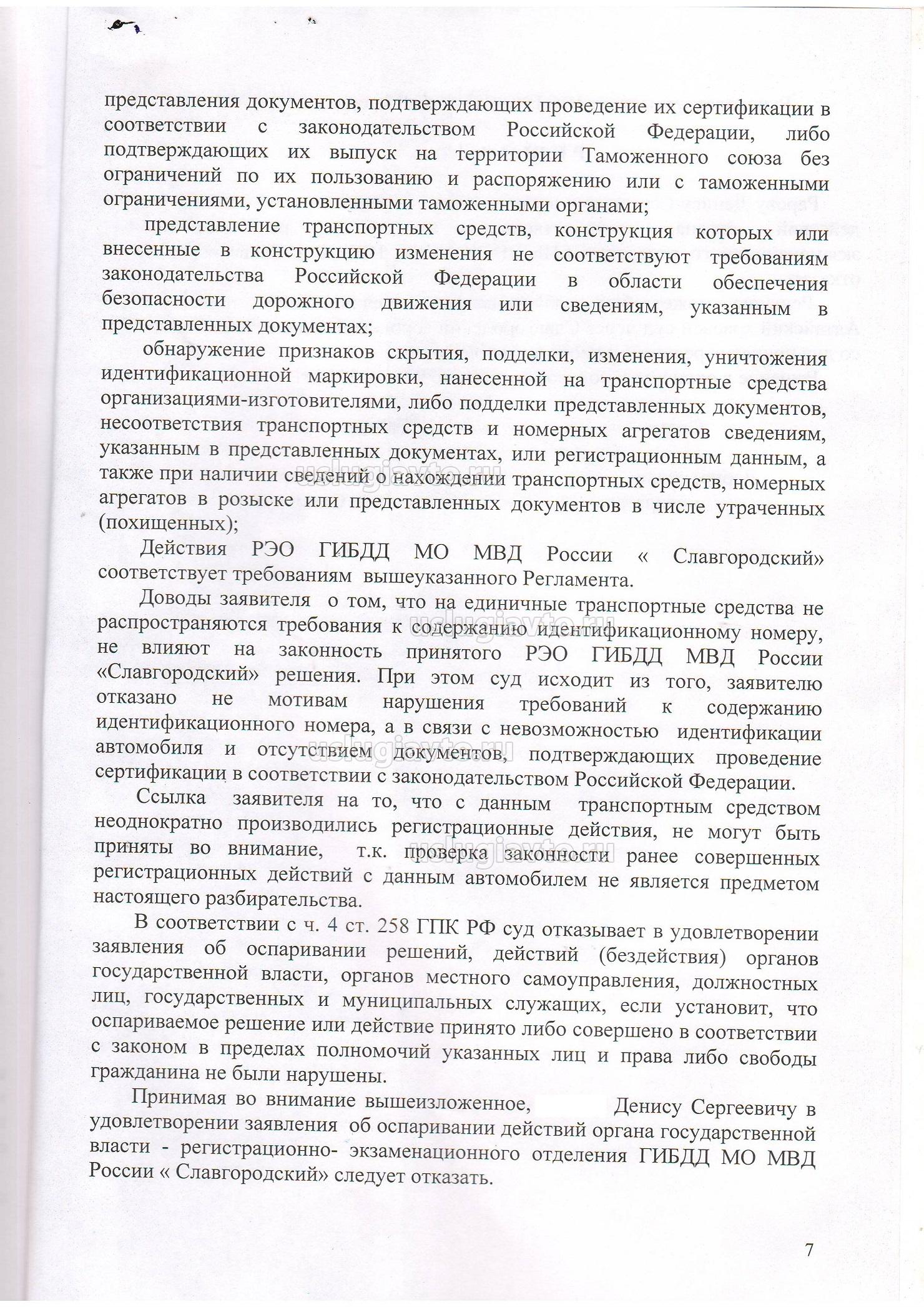 Я просто так не переписываюсь, есть решение суда по данному факту (у нас начали отказывать в регистрационных действиях с автомобилями с замененными агрегатами(до 2008 г.). Как обстоят дела в других регионах???) Посмотрите этот бред.