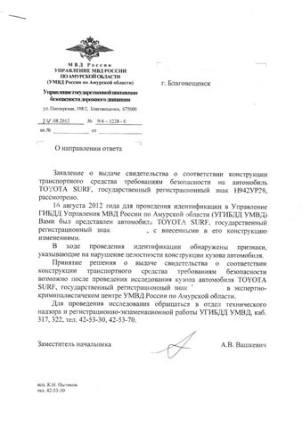 Здесь нет конкретики. Да и мне не понятно каким образом регламент в Вашем конкретном случае ссылается на ГОСТ Р 51709-2001. Отказ ГИБДД должен быть мотивирован, т.е. например отказано по причине несоответствия таким-то пунктам. В Вашем случае отсутствует логическая цепочка отказа, т.е. каждый случай регулируется конкретным разделом регламента и конкретными пунктами.Распоряжение Правительства Российской Федерации от 12 октября 2010 г. N 1750-р г. Москва , в распоряжении 139 документов , под номером 35 ГОСТ Р 51709-2001