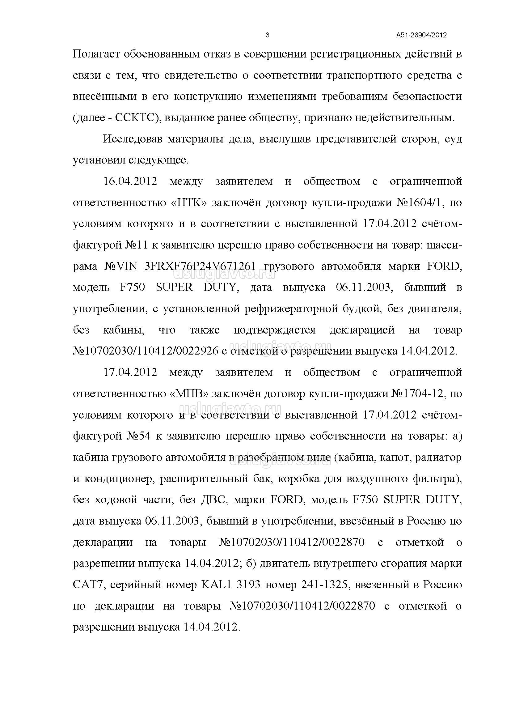 Решение арбитражных судов по отказу в выдаче СКТС и регистрации т/с со внесенными в его конструкцию изменениями. Вплоть до Верховного Арбитражного суда РФ