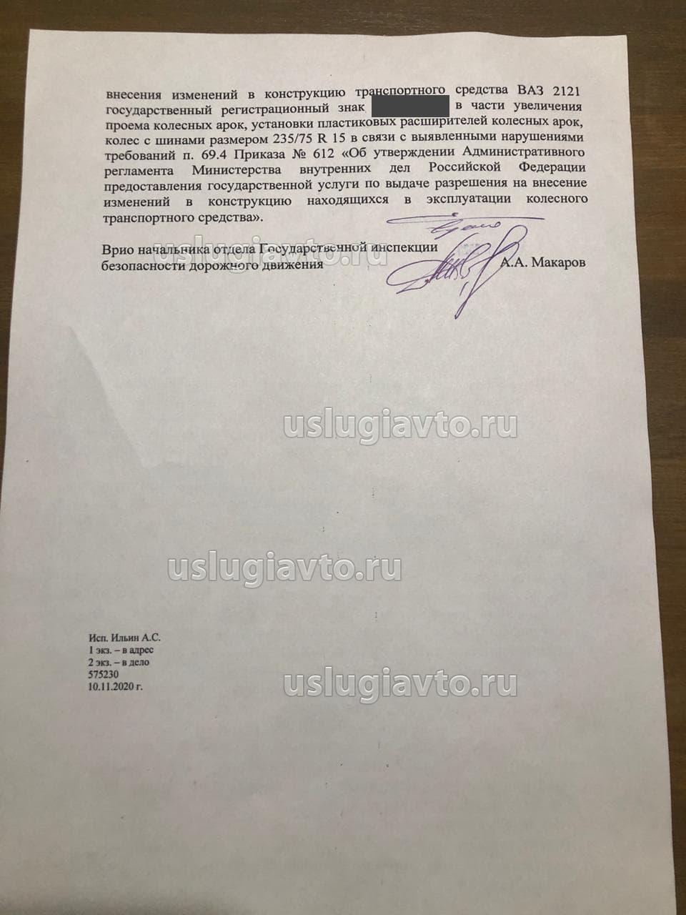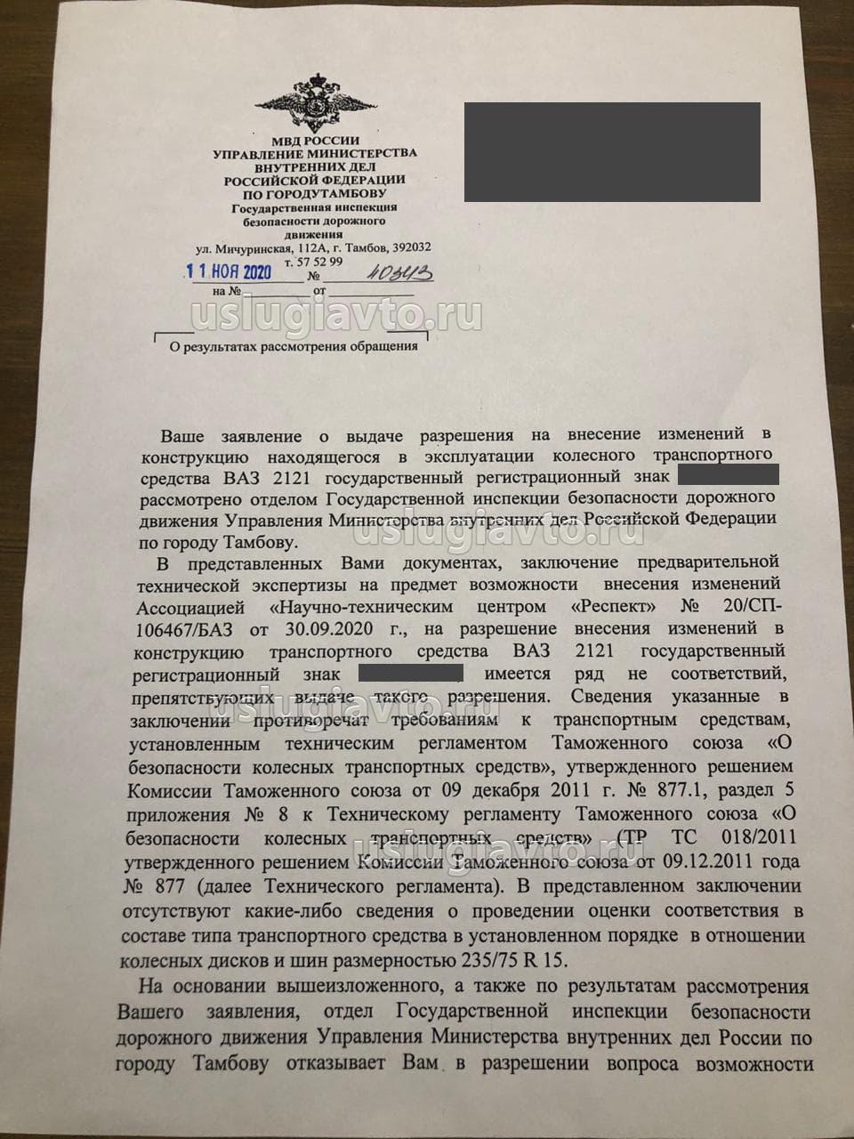 Сотрудники отказывают в установке колес на ВАЗ 2121 размерностью 235/75 r15. Пишут, что отсутствуют какие-либо сведения о проведении оценки соответствия в составе типа транспортного средства в отношении таких дисков и шин. В заключении указано, что штатные колеса демонтируются и устанавливаются диски и шины размерностью 235/75 r15, которые предусмотрены для установки на данный тип ТС согласно ОТТС Е-RU.MT02.B.00012.П1.