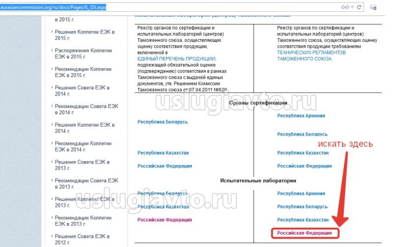 Руководство по поиску испытательной лаборатории на портале ЕЭК