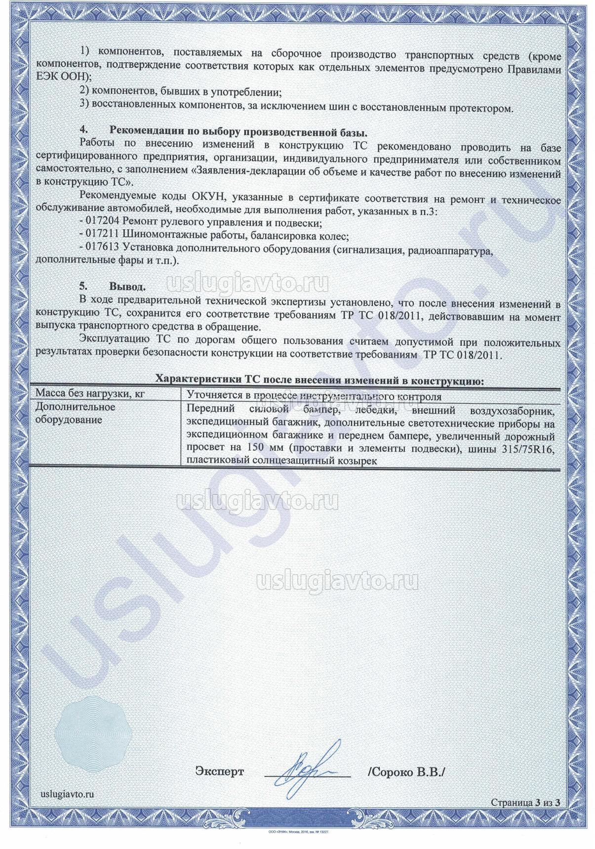 Образец "Заключения..." на переоборудование ТС: