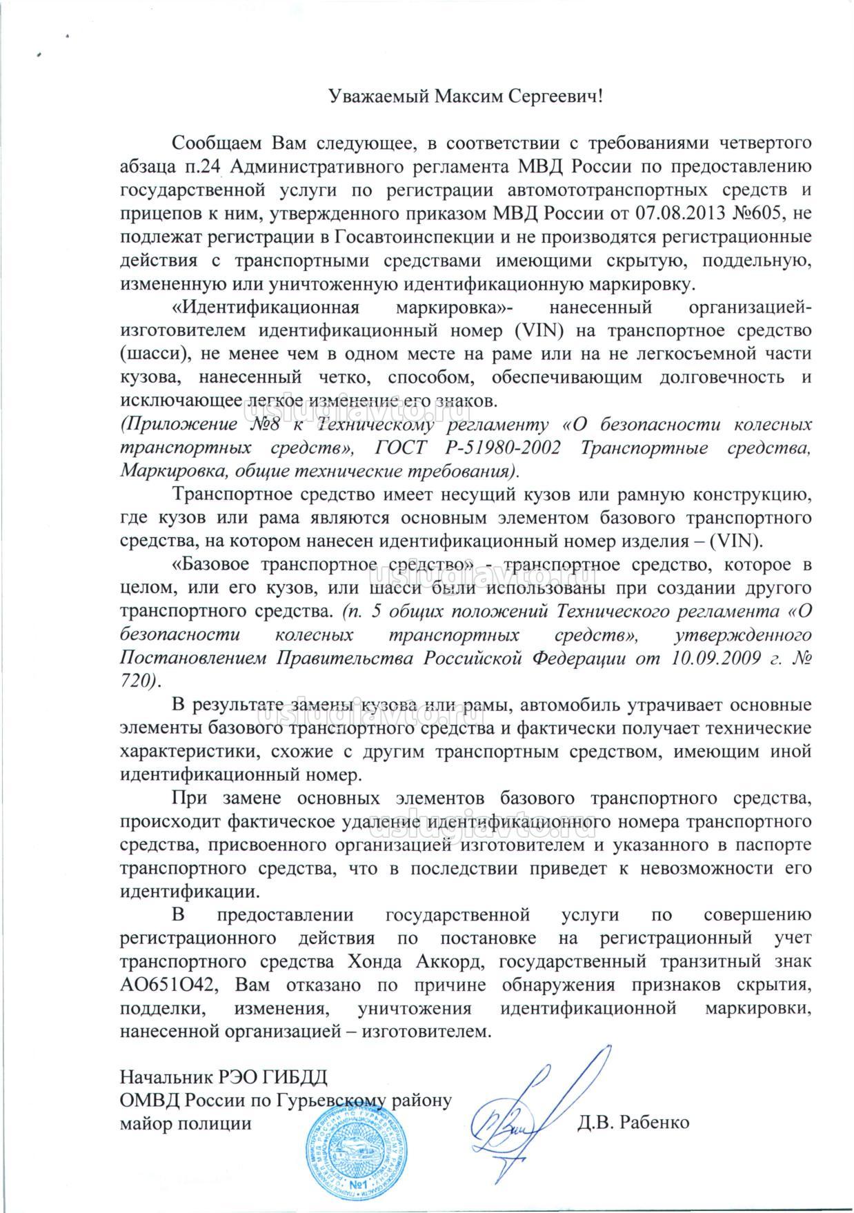У праворукой Хонды Аккорд после ДТП кузов не подлежит восстановлению, обратился в ГИБДД по замене кузова, сказали ищите такой же кузов и без проблем поменяем. Пока искал подходящий кузов все изменилось. В итоге в постановке на учет с заменой кузова отказали. Собрался идти в суд. Подскажите как лучше поступить дальше? И можно ли от Вас получить какие нибудь бумаги, что необоснованно отказали и что такая конструкция безопасна и VIN номер никуда не теряется, потому что его изначально не было.
