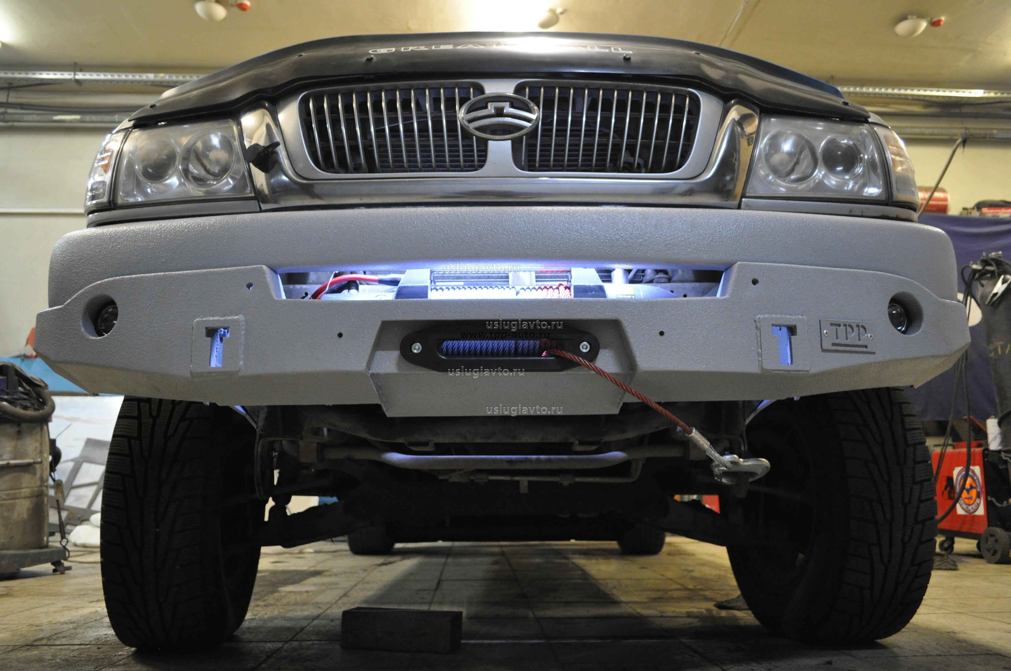 1.Установлена эл.лебедка-Китай "Electric Winch 12000lb" спереди на спец.площадке закрепленной на стандартном креплении рамы .