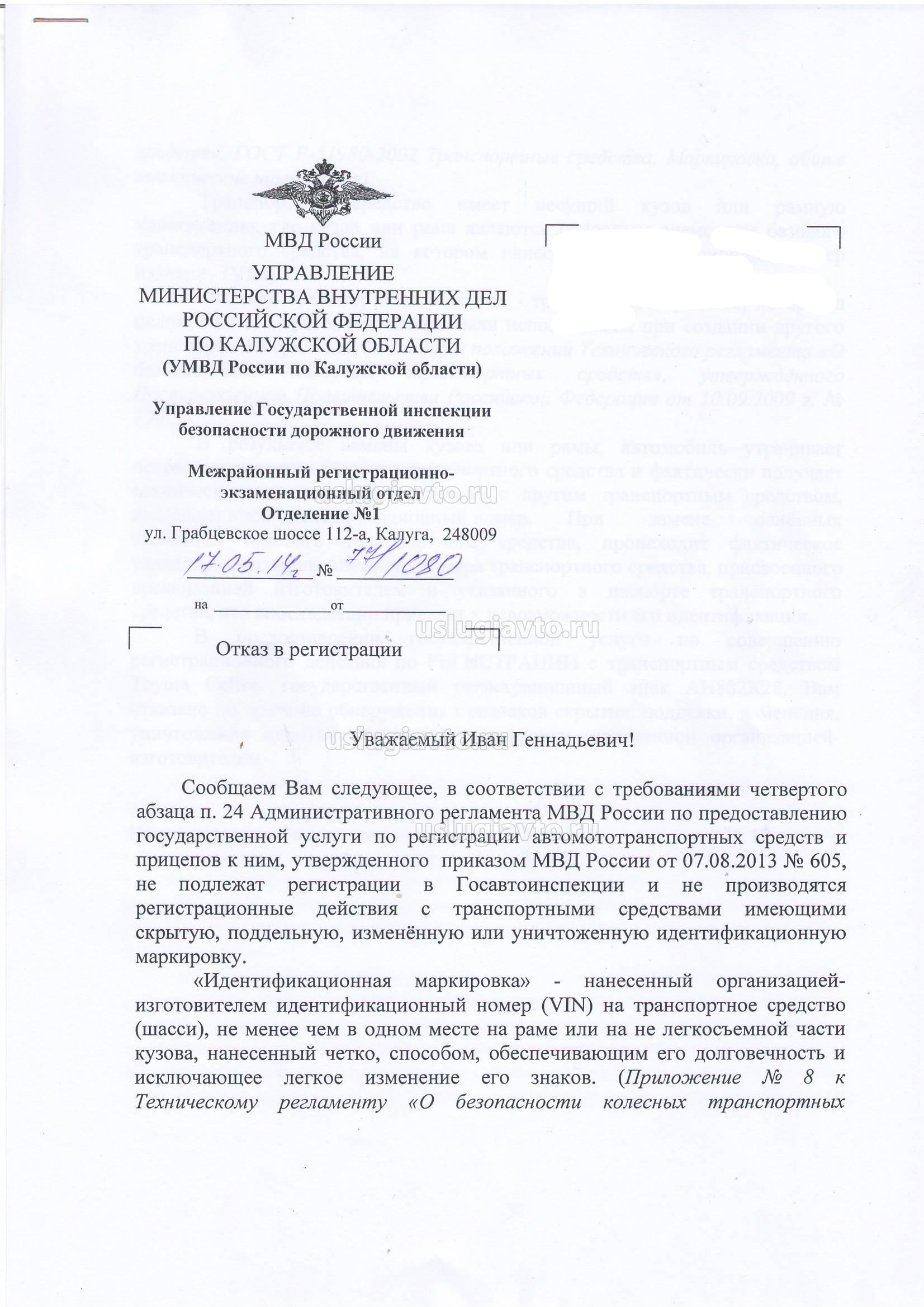 Добрые люди дали копию дела с Челябинска, аналогичная ситуация моей. Постановка на учет + замена кузова - ПТС+ДКП+документы на кузов. Формулировка отказа - уничтожение маркировки. Дело выиграно. Послезавтра иду за отказом:)