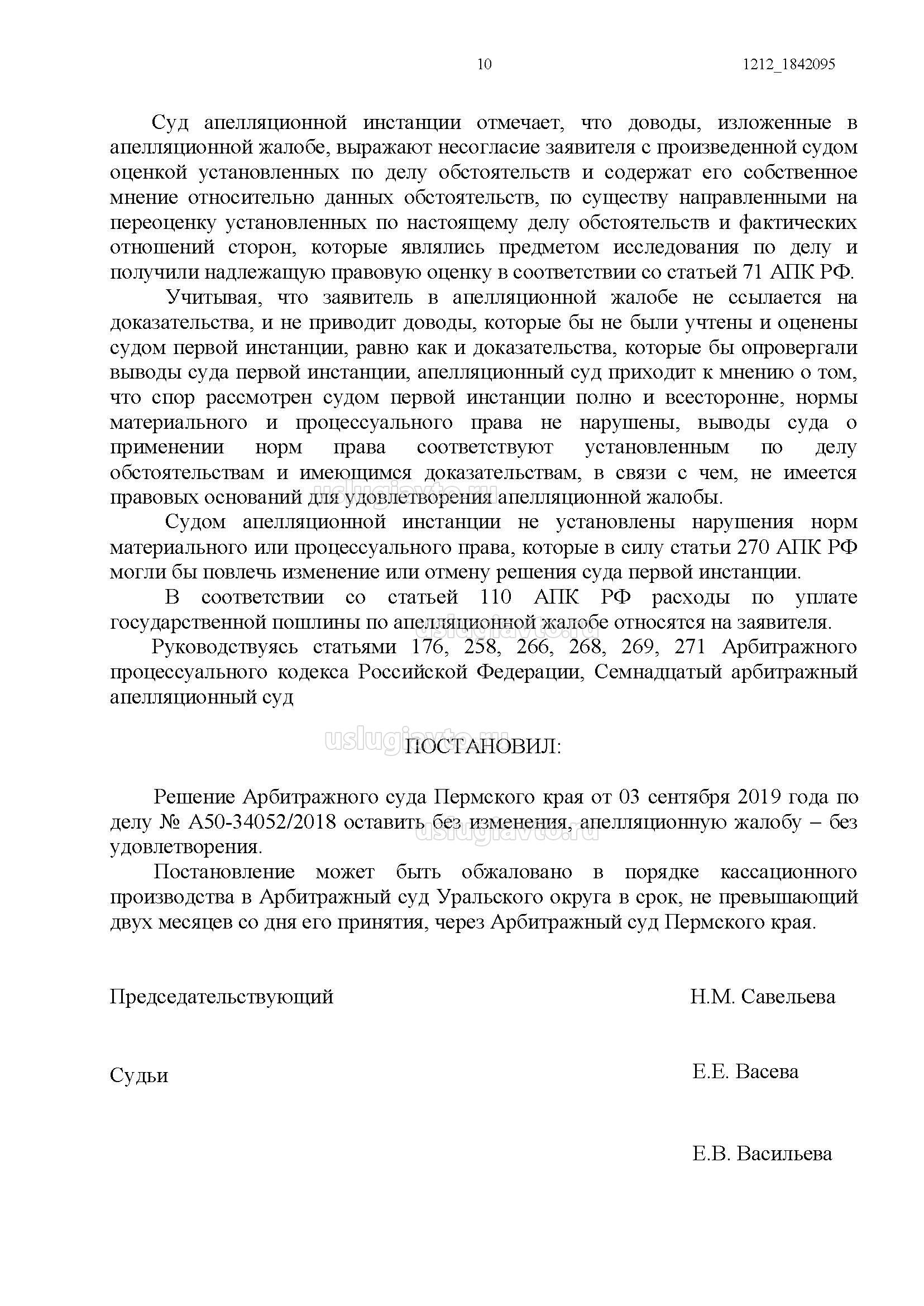 Решение Арбитражного суда Пермского края от 03 сентября 2019 года по делу № А50-34052/2018 оставить без изменения, апелляционную жалобу – без удовлетворения.