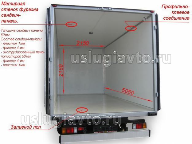 7.2. Габаритная ширина кузова-фургона должна быть не более ширины бортового кузова автомобиля, но не более 2,55 м (для изотермических кузовов транспортных средств допускается максимальная ширина 2,6 м). Габаритная высота автомобиля-фургона не должна быть больше 4,0 м от поверхности дороги.