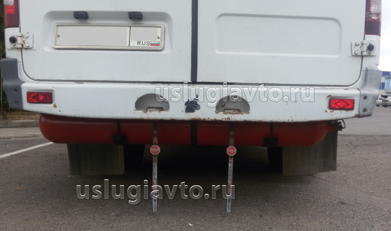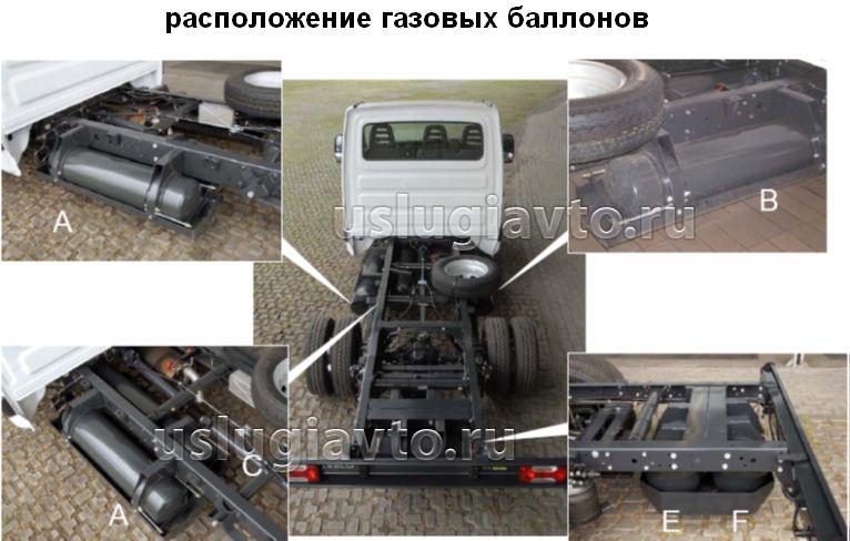 Примеры монтажа баллонов в заднем свесе транспортного средства.