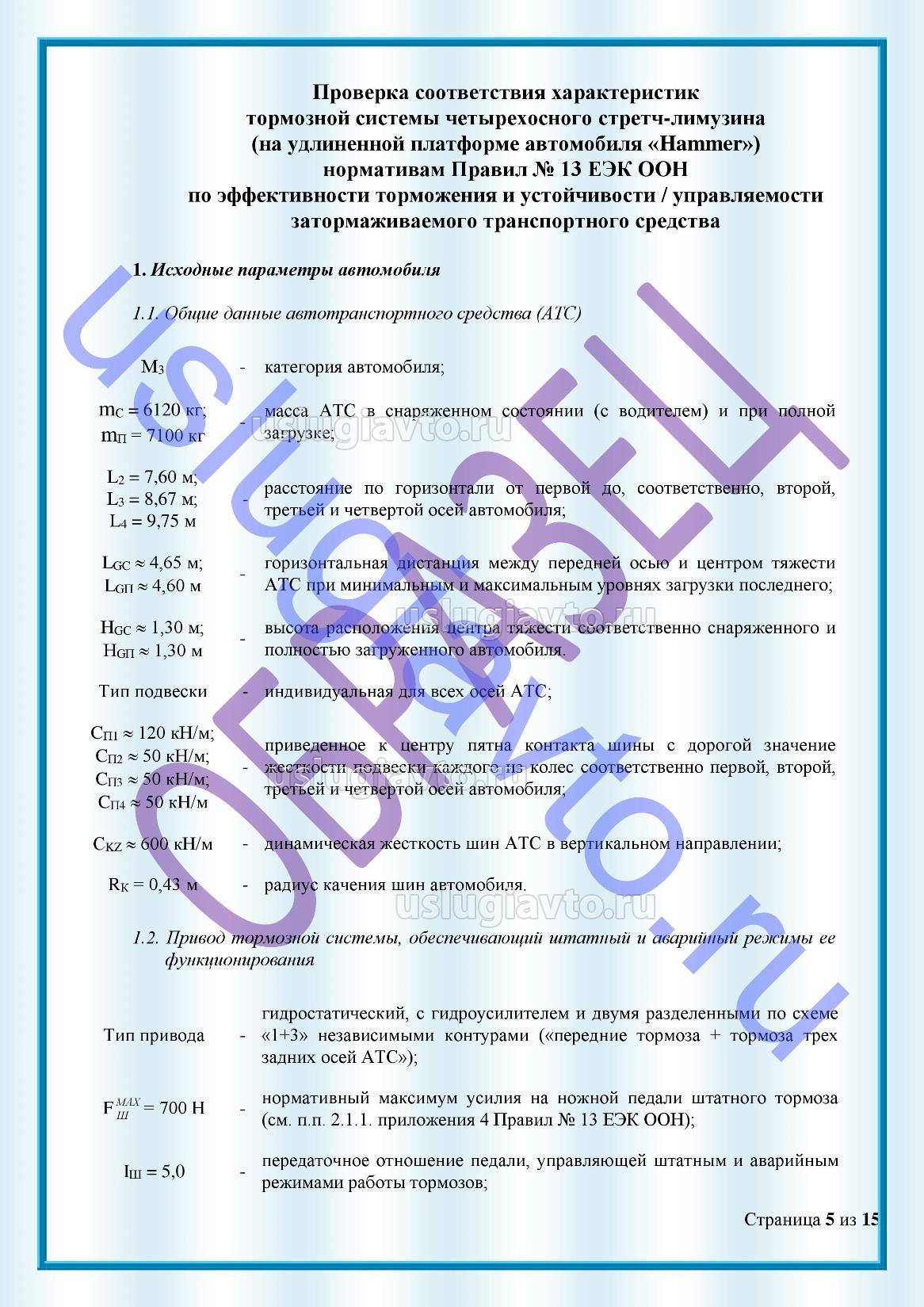 Образец Заключение на переоборудование Hummer H2 путем удлинения колесной базы, увеличение массы и установки дополнительных осей (4-х осный) "Лимузин" стр 5