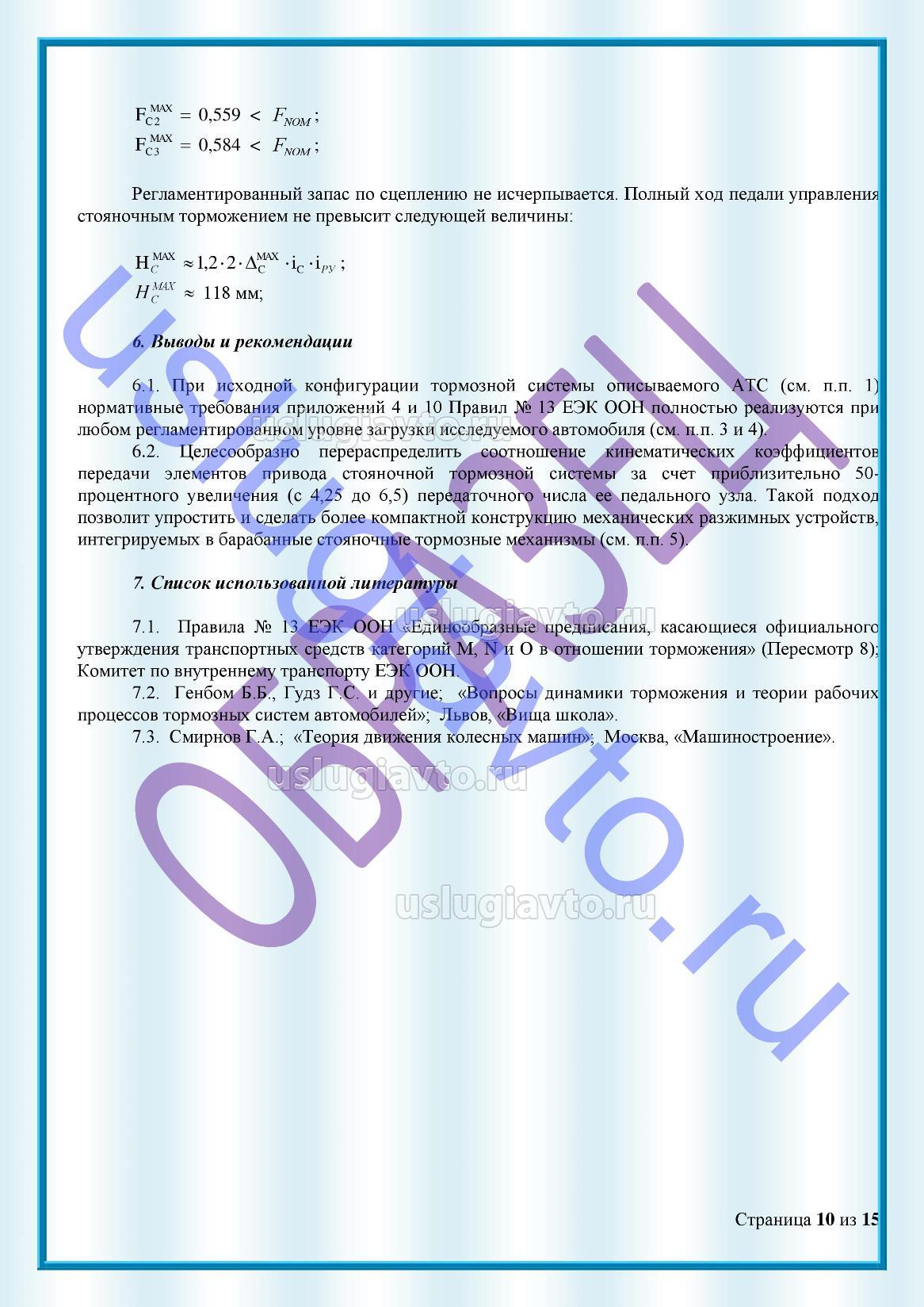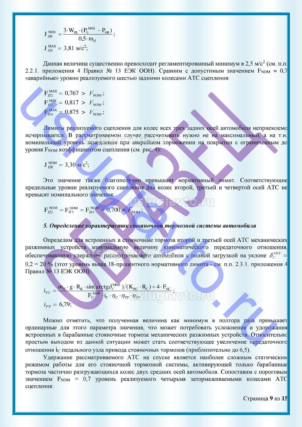 В зависимости от конкретной ситуации может потребоваться расчет прочности рамы (кузова) или расчет эффективности тормозной системы транспортного средства.