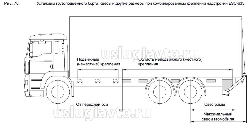 Перед тем как устанавливать грузоподъемный борт необходимо, произведя расчёты, убедиться в его совместимости с шасси и надстройкой.
