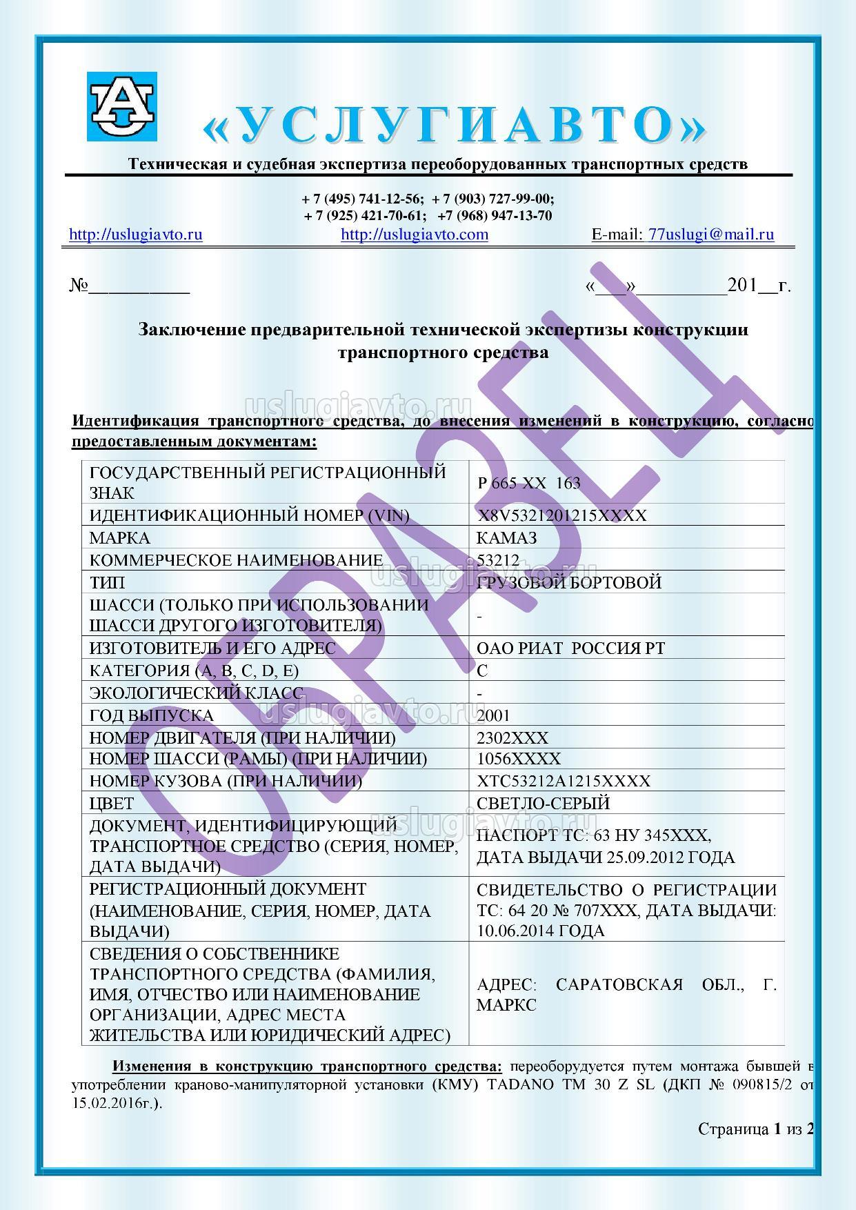 Заключение предварительной технической экспертизы на установку краново-манипуляторного устройства (КМУ) Page1