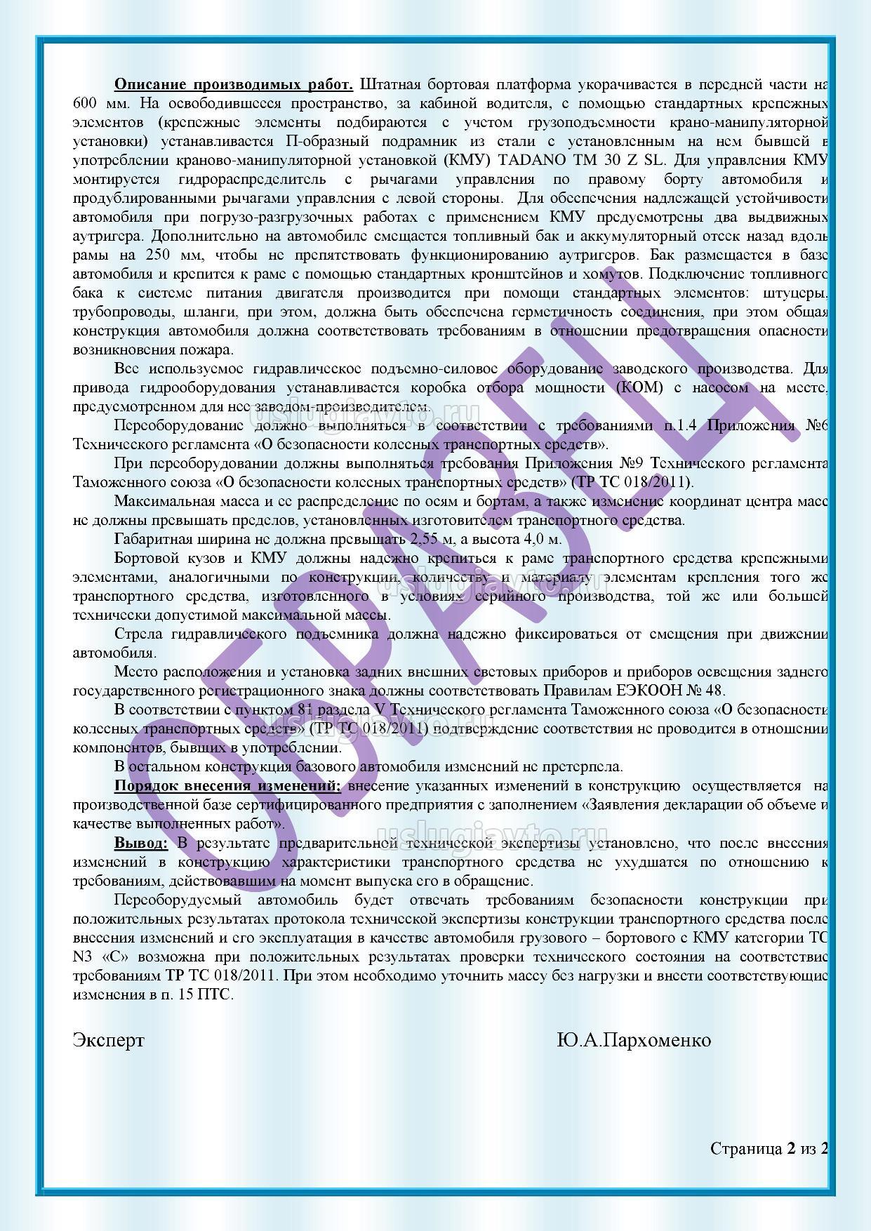 Заключение предварительной технической экспертизы на установку краново-манипуляторного устройства (КМУ) Page2