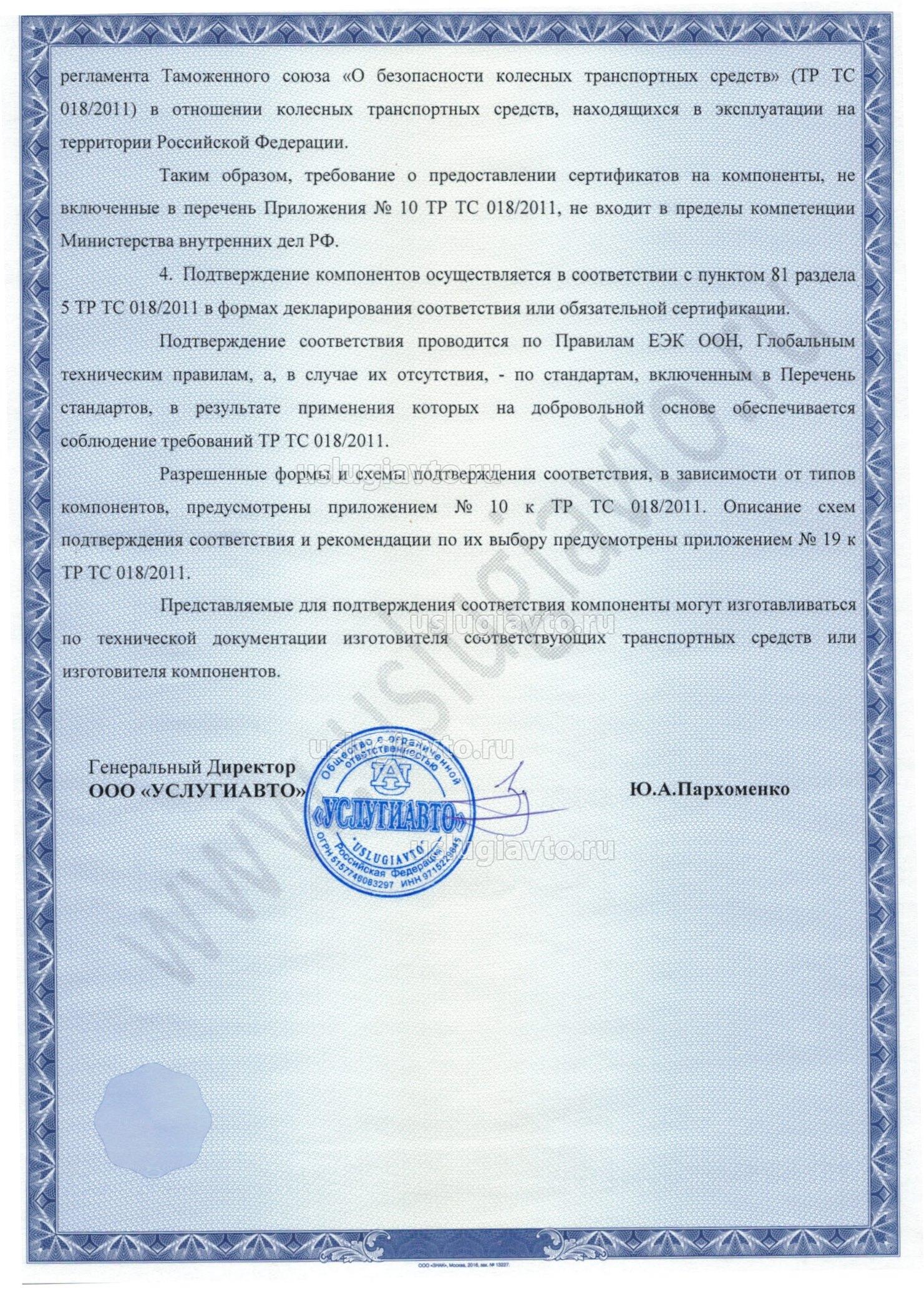 Однако, при установке такого компонента на транспортное средство, находящееся в эксплуатации, в случае внесения изменений в конструкцию требуется прохождение процедуры, предусмотренной разделом 4 (п.75 – 80) ТР ТС 018/2011.