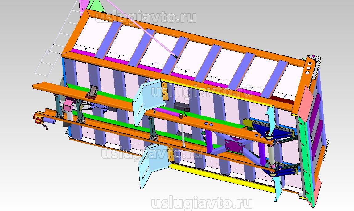NiKas писал(а):По надрамнику. Разверните лонжероны, так чтобы стенка швеллера была с внешней стороны (образец ниже). Утопите поперечины, на которых будут установлены поворотные кронштейны самосвального кузова в надрамник. В конечном итоге, самосвальный кузов, в опущенном состоянии, должен ложится на верхнюю полку лонжеронов надрамника, а не опираться на поворотные кронтейны. Лонжероны надрамника лучше делать из гнутого швеллера, а не катаного.