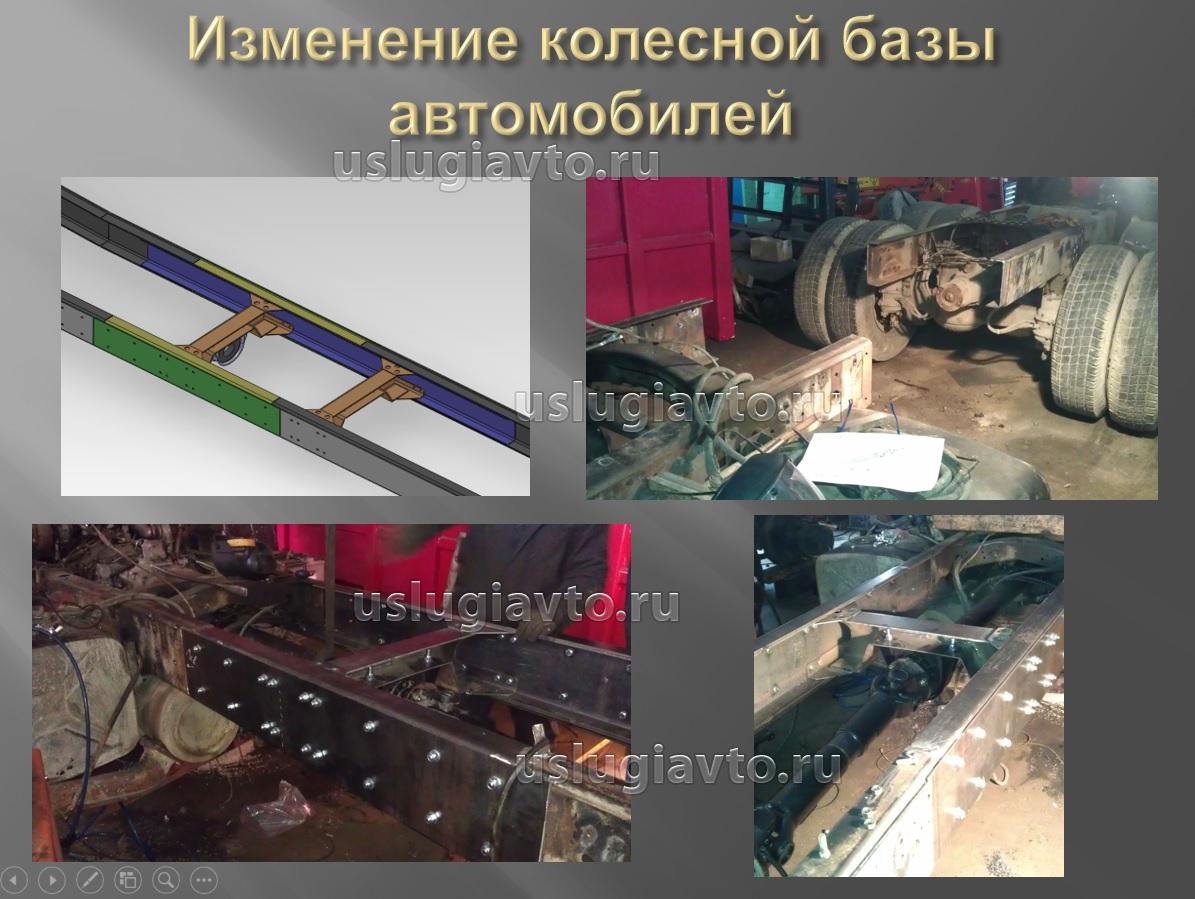 Во первых, заводы изготовители шасси запрещают удлинять колесную базу таким способом, т.к. при этом все отверстия крепления задней подвески окажутся в базе. А так как расстояния между отверстиями на раме и диаметр этих отверстий строго регламентирован и не совпадает с размерами крепления задней подвески, то это приведет к ослаблению рамы и возможно к образованию трещин в процессе эксплуатации. Во вторых, позицианирование поперечины задней подвески, кронштейнов крепления подвески и реактивных тяг произведенных на заводе, изменять нельзя, поэтому переносят все в сборе с задней частью рамы. В третьих, трудозатраты по удлинненению колесной базы таким способом, несоизмеримо выше, чем при разрезании рамы и установке вставки. При этом необходимо использовать более металлоемкое и точное оборудование, чтобы точно и симметрично, на двух лонжеронах рамы, установить все элементы задней подвески. Более подробно можете прочитать в рекомендациях VOLVO в приложении.
