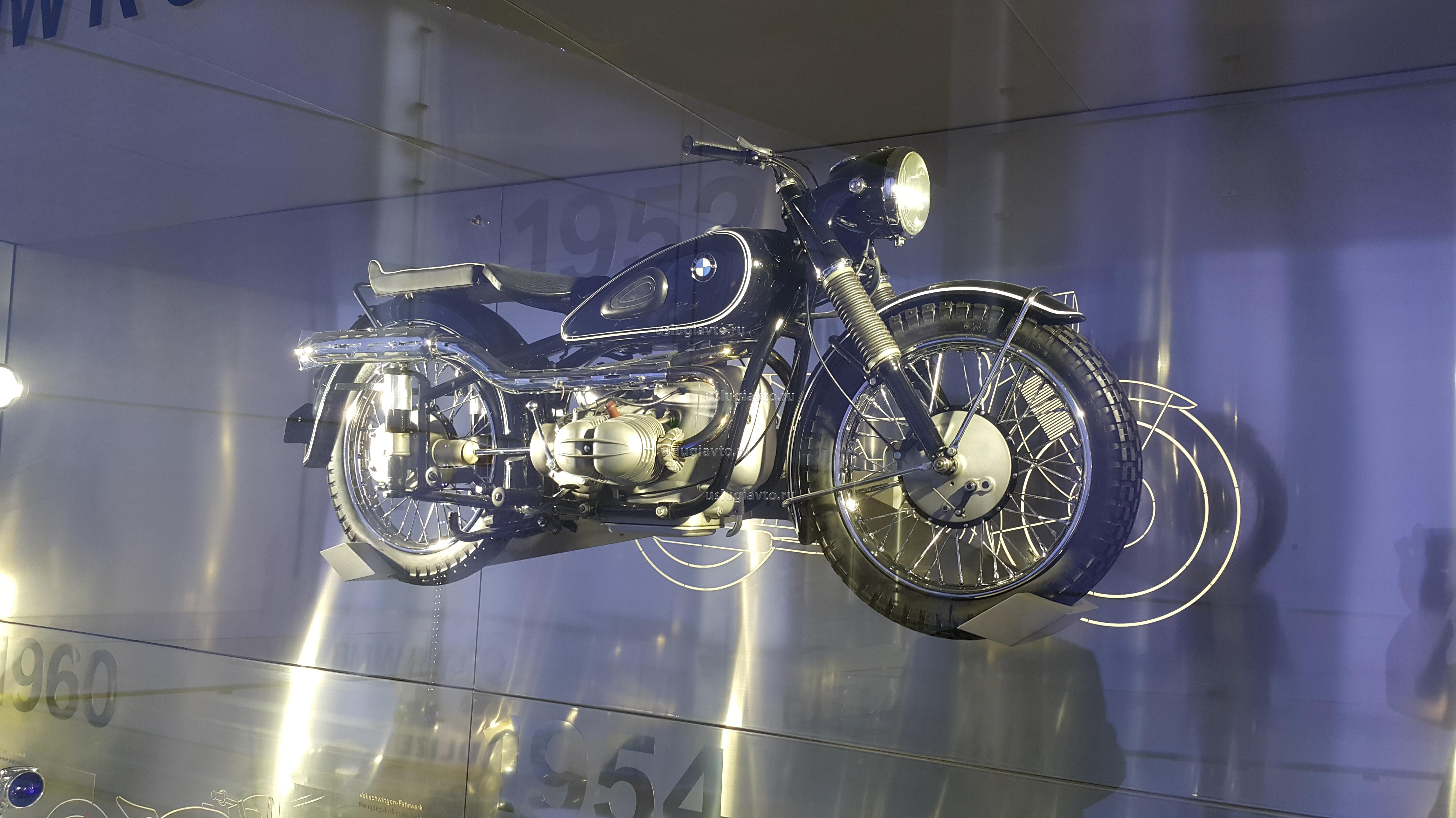 Музей BMW в Мюнхене. Экспозиция состояла в перемешку из мотоциклов и автомобилей. Адрес музея - München, Am Olympiapark 2. Открыт в 1972 году.
