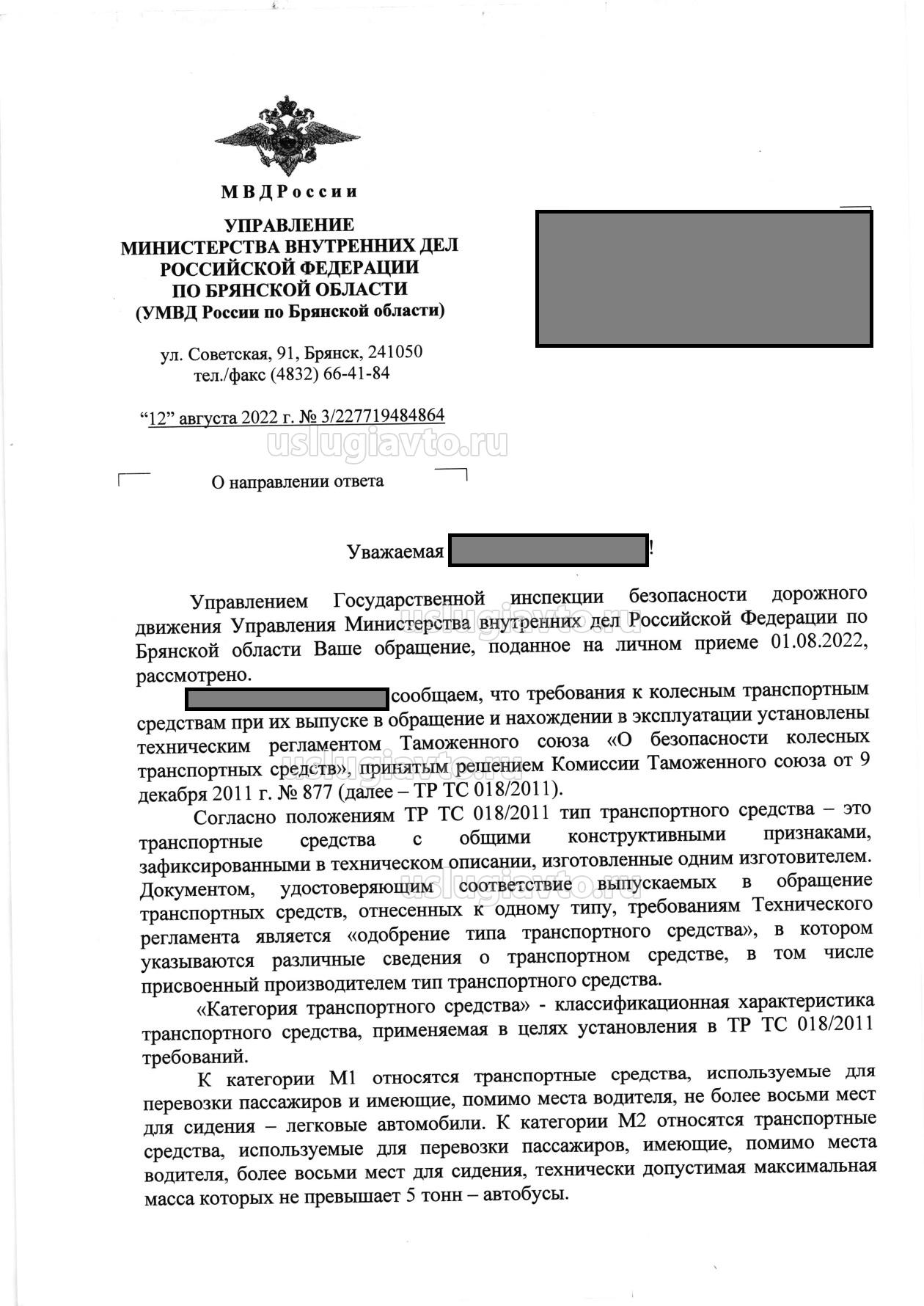 я обратилась в МРЭО, мне было сказано, что после того как внесу изменения в авто, оно станет категории В/М2. Я написала официальное письмо в ГИБДД и получила вот такой ответ (Во вложении).