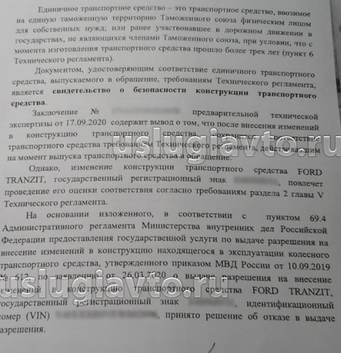 Отсутствие сведений об ОТТС в паспорте транспортного средства не является основанием для отказа в разрешении на внесении изменений в конструкцию.