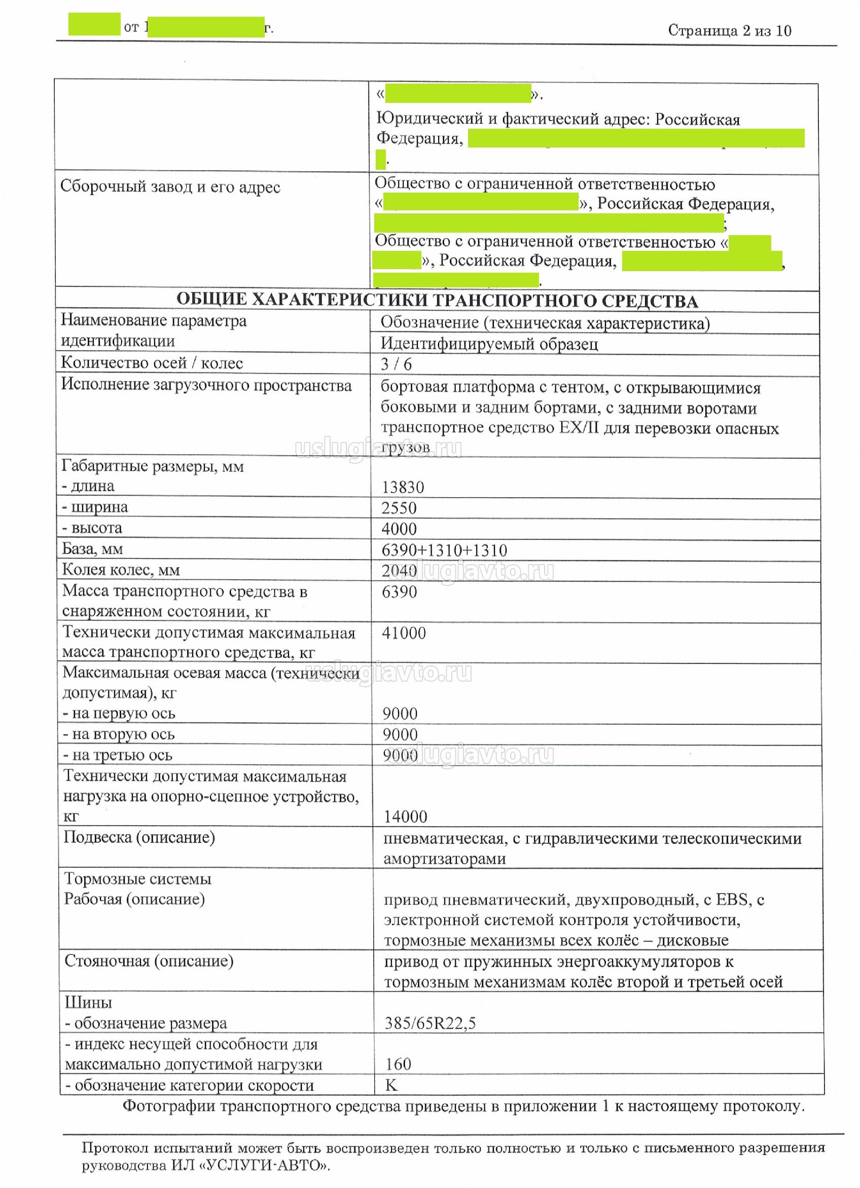 ПРОТОКОЛ сертификационных испытаний транспортного средства (полуприцеп бортовой тентованный категории О4) для перевозки опасных грузов категории EX/II в соответствии с классификацией ДОПОГ в отношении требований технического регламента Таможенного союза «О безопасности колесных транспортных средств» ТР ТС 018/2011 (подпункт 2.5.1 Приложения № 6 - Правила ООН №105-04 «ЕДИНООБРАЗНЫЕ ПРЕДПИСАНИЯ, КАСАЮЩИЕСЯ ОФИЦИАЛЬНОГО УТВЕРЖДЕНИЯ ТРАНСПОРТНЫХ СРЕДСТВ, ПРЕДНАЗНАЧЕННЫХ ДЛЯ ПЕРЕВОЗКИ ОПАСНЫХ ГРУЗОВ, В ОТНОШЕНИИ ИХ КОНСТРУКТИВНЫХ ОСОБЕННОСТЕЙ»)