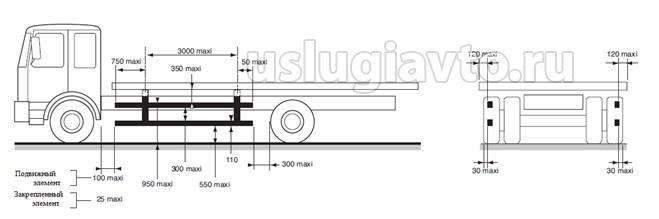 • 100 мм для транспортных средств категорий N3 и O4, причем они должны быть относительно плоскими.