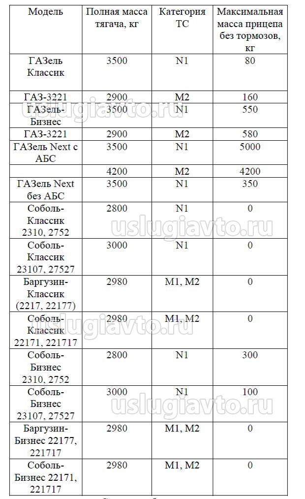 Расчет показал, что на автомобилях Соболь-Классик и Баргузин-Классик (все категории), Соболь-Бизнес (кат. М1, М2), Баргузин-Бизнес (кат. М1, М2) буксировка прицепа недопустима!