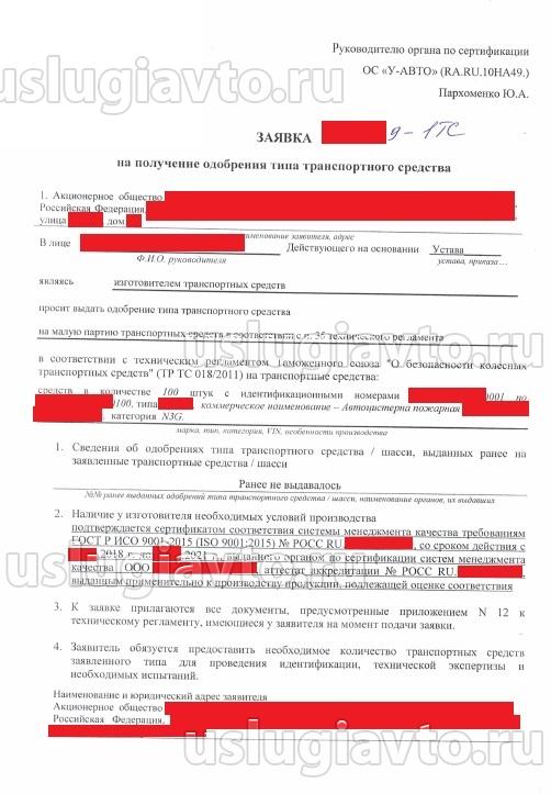 В ОС «У-АВТО» поступила заявка на получение ОТТС на партию специальных ТС (автопожарная цистерна) категории N3G от заявителя, являющегося также изготовителем транспортного средства. Заявка предоставлена по форме, установленной органом по сертификации.