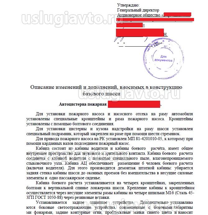 - Подробный перечень вносимых в конструкцию базового шасси изменений;