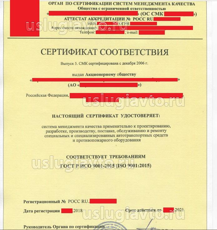 - Сертификат соответствия системы менеджмента качества (СМК);