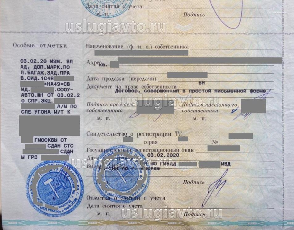 Отметки в ПТС