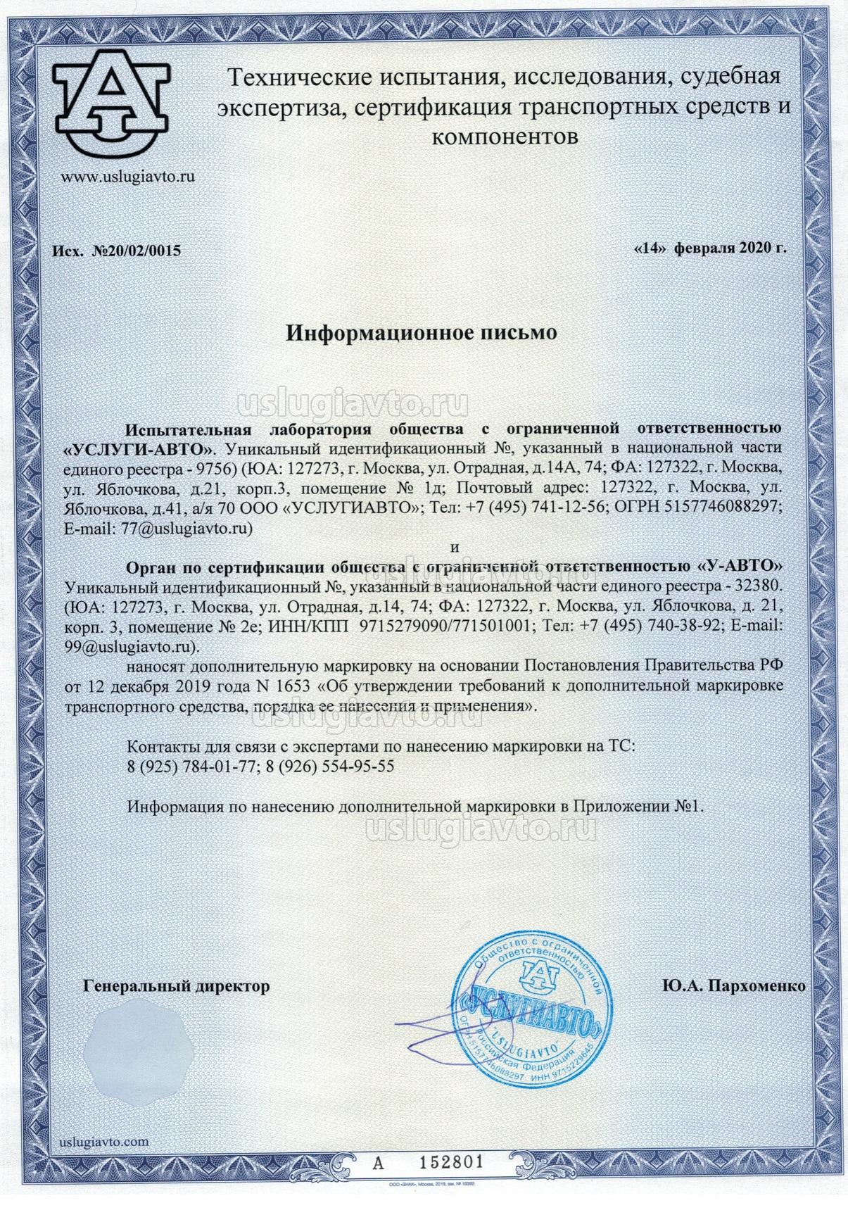Нанесение дополнительной маркировки возможно Испытательной лабораторией "УСЛУГИ-АВТО"