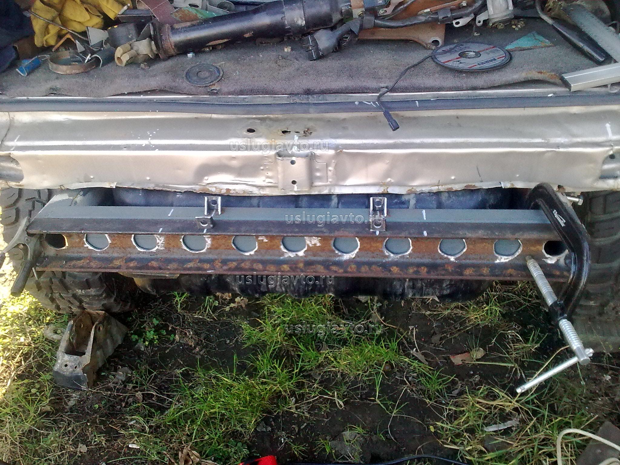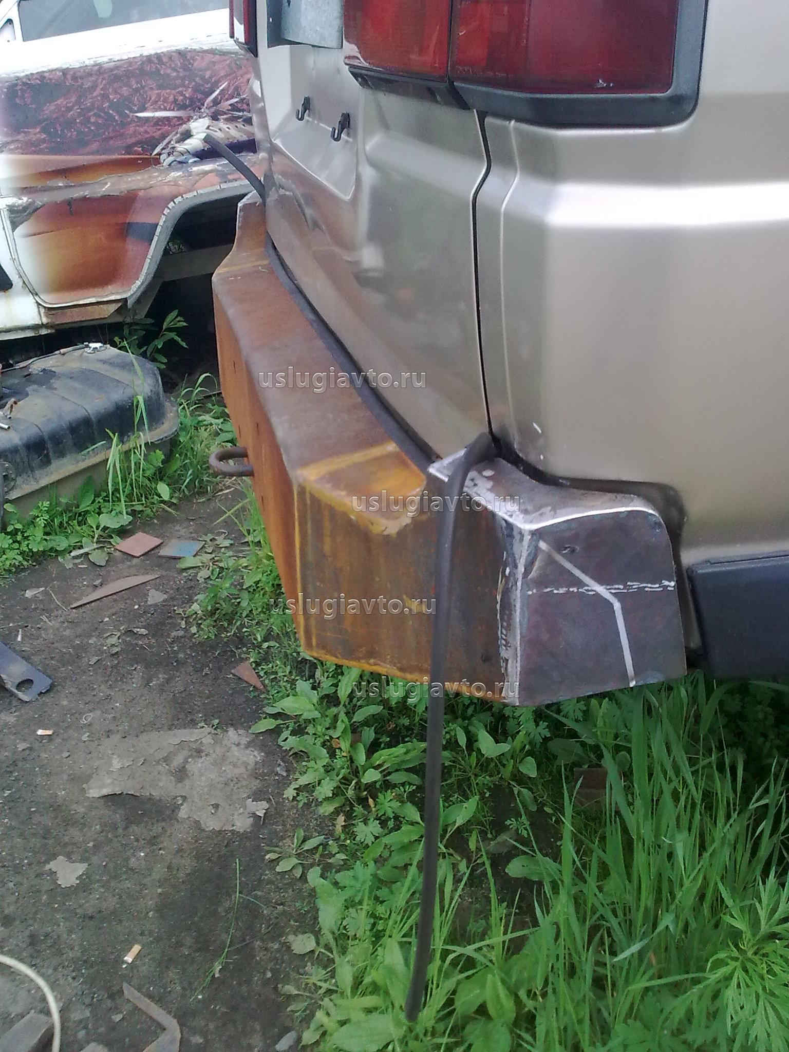 Приварил "закладные" гайки к крепёжным пластинам бампера…