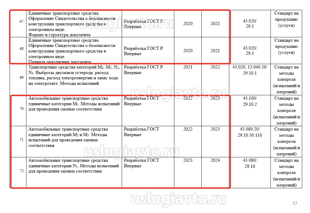 Также предусматривается создание еще множества ГОСТов регламентирующих требования к единичным транспортным средствам.