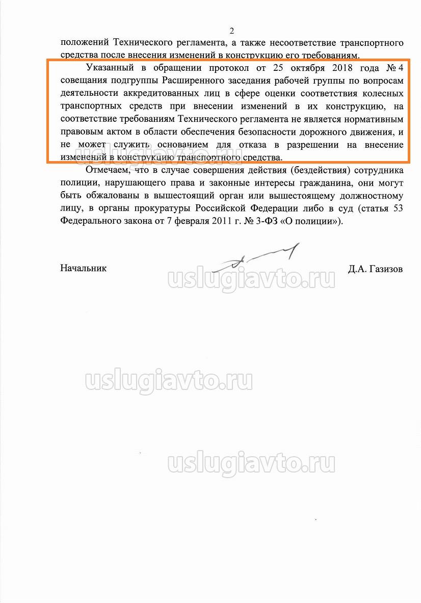 Все, что на двух последних страницах спрашивают люди,- можно самим найти в сети и здесь на форуме . Но для ОТН, скорее всего только в суде можно доказать,что "колеса большого диаметра" РАЗРЕШЕНЫ в случае ВНЕСЕНИЯ изменений в конструкцию ТС" ,как и оспорить отзывы "фирмы" г.Васильева на запросы ГИБДД !