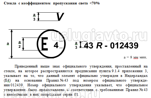 Тонированное стекло, соответствующее правилам ООН №43. Маркировка.
