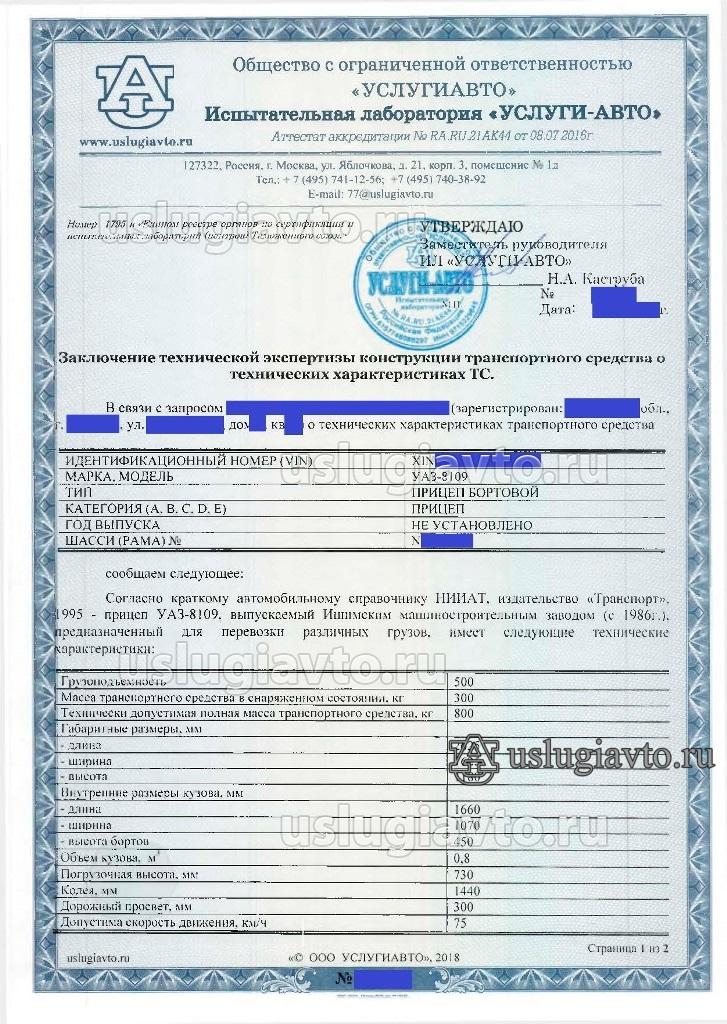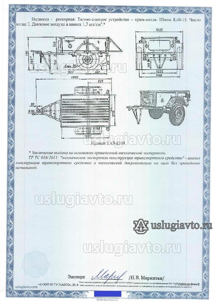 Заключение о технических характеристиках прицепа УАЗ-8109.