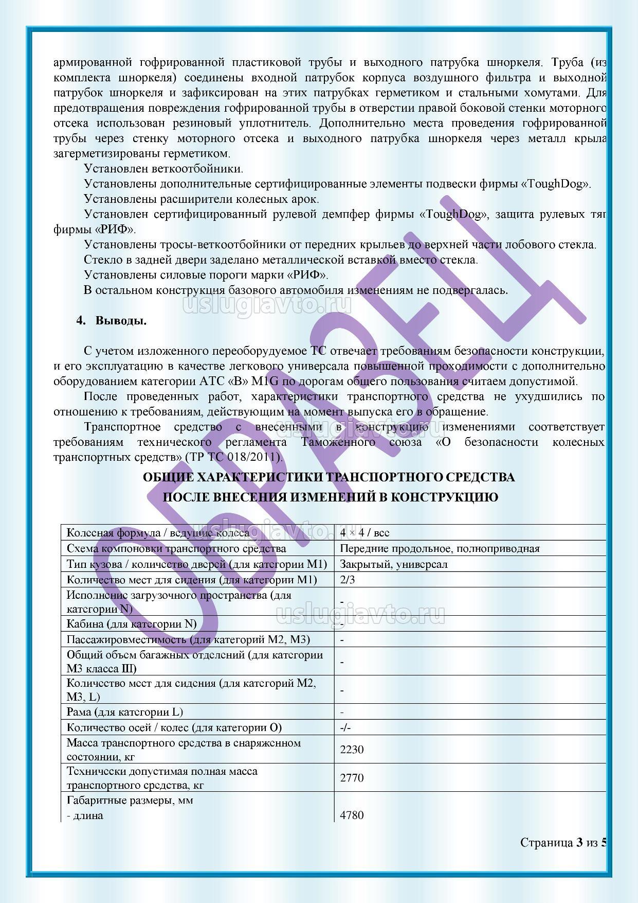 Протокол после переоборудования Уаз Патриот в экспедиционник