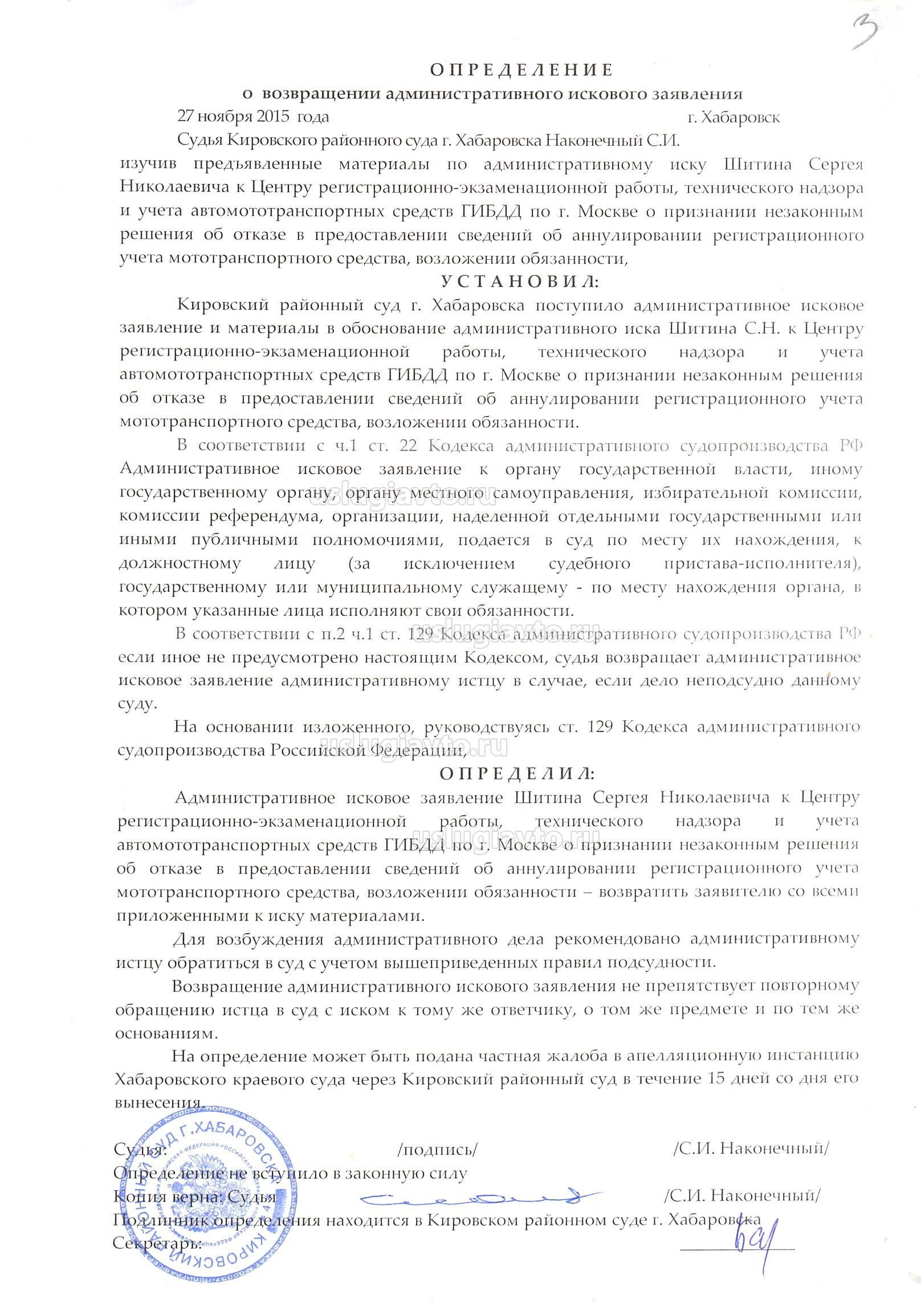 Сегодня получено определение судьи от 27 ноября 2015 года.